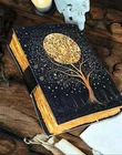 The Grimoire leather journal is a luxurious and limited edition blank spell book, perfect for those who enjoy writing their thoughts and ideas. This handmade journal features a beautiful leather cover with a Tree of Life print, adding a touch of mysticism to the pages inside. Personalized to the user's preference, this journal is ideal for business and industrial use, providing a unique and stylish option for note-taking and planning. Originating from India, this journal offers a blend of quality craftsmanship and spiritual design. Grimoire leather journal, Print Tree of Life Journal, Blank spell book book of shadows Leather Celestial Gifts For Him Her • Print - Tree of life • Vintage lock closure • Genuine buffalo leather • Vintage deckle edge old paper • handmade rustic cotton paper • 100 Sheet (200 pages both side) ●Leather journal witchcraft book of shadows notebook is made with 200 pages of Antique Paper which looks like it was pulled from history. You will fall in love with the the antique handmade cotton paper which is unique to our Vintage Journal Notebook. ● The vintage clasp lock will keep all your valuable writing locked inside.Sturdy hand stitched binding to make sure that no paper comes out loose from your spell notebook. ● The witchcraft supplies journal is printed with a special seven stone called “Chakra healing” which helps to reveal inner truth within yourself and encourage self-awareness and self expression. We have taken extra to make sure that the emboss is perfect in every piece. ● Sketch, Doodle, Write on your Leather Blank Spell Journal with a Calligraphy Pen Fountain Pen, Brush Pen, Ball Pen, Acrylic Colours, Watercolor and many more. We guarantee no bleed through. ● Can be used as a notepad, journal, writing notebook, sketch book. 1.25 inch thickness, easy for handwriting, drawing or sketching and compact for carrying in your bag. Ideal for alternative ● Artist Sketchbooks, Photo Album, Traveling Notes, Business Executive, Logbook, Poetry Work, Journalists, Food Planner, Instagram Scrapbook and Bible Journaling. ● Best Gift For Your Companion: A Journal Is Like A Trusted Friend. You Can Use It To Solve Queries, Get Inventive, Or Record Valuable Memories For Them To Last Forever Or You Can Just Use It As A Gift For Your Wife, Son, Or A Daughter Or For Some Enthusiastic Writer In Your Family. Even For Looking For A Miraculous Spell Book Or A D&D Gamer Looking For His Quest Book. ● Perfectly Sized For Multi-Purpose Use: Length 5", Width 1", Height 7" Inches, This Easy To Carry Personal Diary Is Perfect To Use As A Health Journal, Sketchbook, And Poetry Journal. It’S An Ideal Journal Which Records Your Daily Thoughts And Life Lists. And Also Good For Designing, Doodling, Or Calligraphy Of Your Choice Leather journal Tree of life Tree leather journal Witch craft Witch Witch decor Rustic journal Grimoire journal Book of shadows Wicca pagen Christmas gifts Sun and moon Blank spell book Book of shadows Celestial gifts Gifts for him her