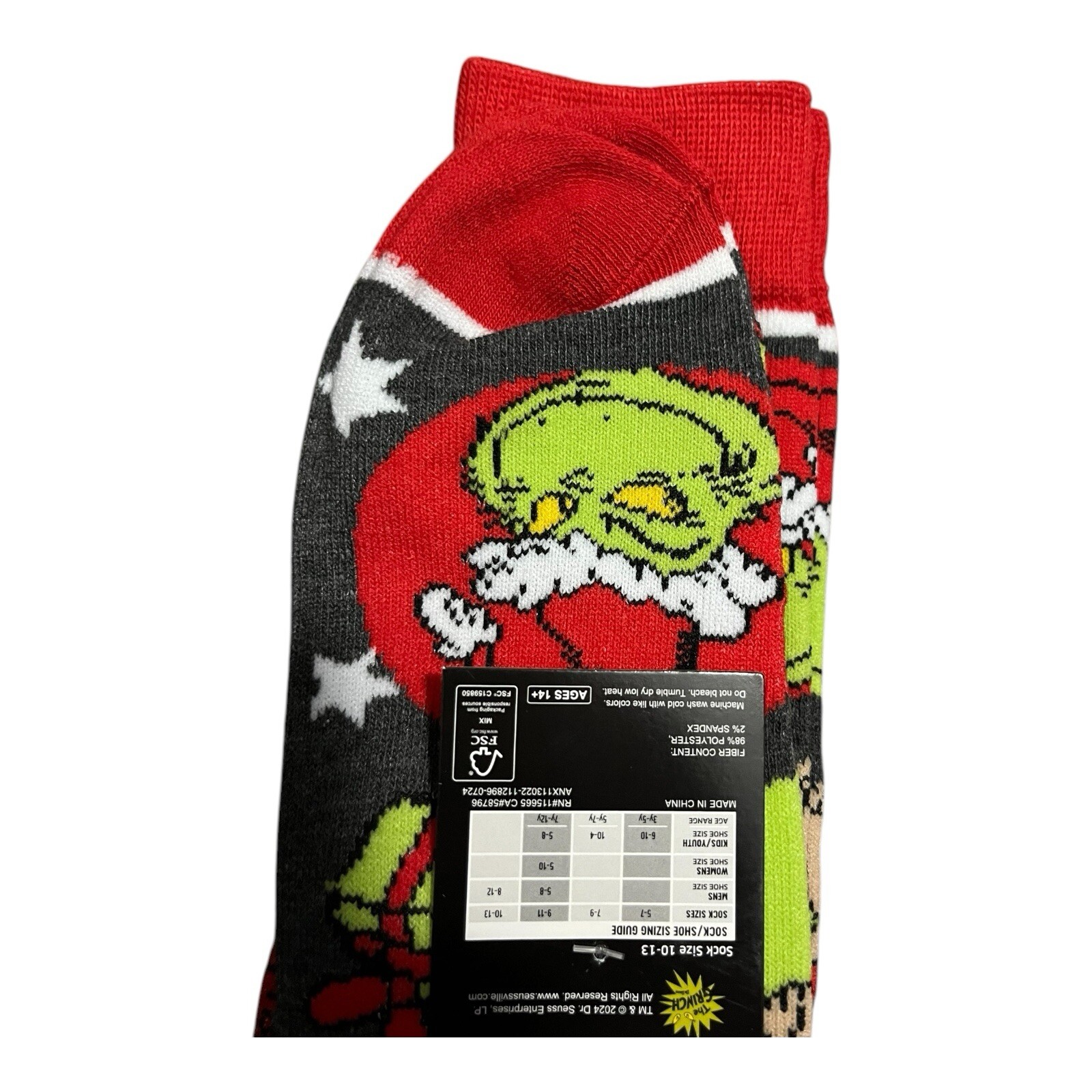Step into the festive spirit with a pair of The Grinch Christmas Novelty Socks, perfect for those with an 8-12 shoe size. Each pack contains two pairs of socks, ensuring you have a colorful addition to your wardrobe for more than one occasion. These socks are not just comfortable, but also feature a vibrant multicolor design that celebrates the holiday season with a touch of Dr. Seuss whimsy. Crafted for both fun and comfort, these novelty socks are an excellent choice for anyone looking to add a bit of Christmas cheer to their everyday look. The unique theme of Christmas makes them ideal for holiday gatherings or as a charming gift for the Dr. Seuss fan in your life. Enjoy the blend of style and holiday spirit in every step.