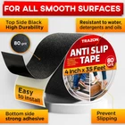 Store New Arrivals Add to Favorite View Feedback Contact Grip Tape - Heavy Duty anti Slip Tape for Stairs Outdoor/Indoor Waterproof 4Inch X 35Ft Safety Non Skid Roll for Stair Steps Ramp Traction Tread Staircases Grips Adhesive Non Slip Strips Walk Black Description Item model number 4 Inch x 35 Feet Unit Count 35 Feet Number of Items 1 Compatible Material Wood, Laminate, Hardwood, Tile, Stone, Concrete, Metal, Plastic, Glass Color Black Water Resistance Level Waterproof Brand Trazon Material PVC Country of Origin China Item Weight 1.85 pounds Recommended Uses For Product Indoor & Outdoor Surface Recommendation Wood, Laminate, Hardwood, Tile, Stone, Concrete, Metal, Plastic, Glass Size 4 Inch x 35 Feet Special Feature Anti Slip, Long Lasting, Weather Resistant, Heavy Duty, Self-Adhering Product Dimensions 5.28 x 5.28 x 4 inches Manufacturer Trazon Professional grade anti slip adhesive tape: Durable waterproof anti skid tape for steps is perfect for outdoor and indoor use. We use premium heavy duty 80 grit tape which creates the ideal texture to fully prevent slipping. Non skid tape provides extra foot traction for your additional protection on any slippery surface, including stairs, patio, entryways, ladders, deck ramp, laminate, skateboard, scooters, tile, slippery floor, trailers, boats, sporting equipment, and forklifts. Waterproof, long lasting & peel resistant in any weather: Our abrasive grip tape roll for stairs was specifically designed to withstand heavy foot traffic and any weather conditions, including rain, snow, frost, sun, water, and heat. Stair tread tape creates an exceptional long term grip on all surfaces for many years. Works on multiple surfaces: Non slip tape strongly adheres to all surfaces, including smooth and rough coverings. You can stick this anti slip traction tape on wood, tile, stone, concrete, metal, plastic and glass, all of which require extra foot traction. Enjoy all around protection and ultimate comfort in your home, as well as in hotels, restaurants, businesses and educational establishments. Made for you safety: Our adhesive non slip tape for steps is designed specifically to make your home safe for you and your family. Superior anti skid tape for steps outdoor creates a safer environment for walking, working, stepping and standing. Reduce the risk of falls, trips and slips for your loved ones, especially the eldery, children and pets. Easy to use with our customer suport. Non skid tape measures 4 in by 35 ft - the perfect size for all your needs. Simply cut out a piece of any size, peel the protective film, and apply the tape on a clean surface. Designed in the USA and produced according to the highest quality standards. Your new favorite anti slip tape is just a few clicks away! If you have any problems, contact us. We will solve it for you! Product Description MAKE YOUR SURROUNDING A SAFE PLACE FOR YOU AND YOUR FAMILY! Non slip tape strongly adheres to all surfaces , including smooth and rough coverings. You can stick this anti slip traction tape on wood, tile, stone, concrete, metal, plastic and glass, all of which require extra foot traction. Enjoy all around protection and comfort in your home, as well as in hotels, restaurants, businesses and educational establishments. This allows you to get the maximum grip of the foot with the desired coverage. It has strong acrylic adhesive which adheres firmly to the surface you need. The waterproof anti slip tape is 35-foot long and 4 inches wide making it an all around tape for your home. PROFESSIONAL GRADE ANTI SLIP ADHESIVE TAPE We use premium heavy duty 80 grit aluminum oxide which creates the ideal texture to fully prevent slipping . Non skid tape provides extra foot traction for your additional protection on any slippery surface , including stairs, patio, entryways, ladders, deck ramp, laminate, skateboard, scooters, tile, slippery floor, trailers, boats, sporting equipment, and forklifts. PEEL RESISTANT IN ANY WEATHER Waterproof and durable - Trazon anti slip tapes are adapted for indoor and outdoor stairs . The stair grip tape is made of the best materials to provide satisfaction and durability in all weather conditions for long use WATERPROOF & LONG LASTING Our abrasive grip tape roll for stairs was specifically designed to withstand heavy foot traffic and any weather conditions , including rain, snow, frost, sun, water, and heat. Resistant to oils & detergents . Stair tread tape creates an exceptional long term grip on all surfaces for many years. Home & Workplace Stairs Our adhesive non slip tape for steps made with 80 grit aluminum oxide for the best traction and the perfect texture to make sure you and your surrounding are safe. Indoor & Outdoor Use. Waterproof High strength adhesive tape and durable waterproof anti skid tape for steps outdoor and indoor usage prevents slip on your slippery surfaces. Ladders & Step Stools Stair tread tape holds well on all surfaces and in all weather conditions. Ideal use grip tape for stairs, entryways, ladders and slippery floor. Ramps & Industrial Areas Just peel and stick to wood, concrete, stainless steel, plastic, tiles, cloth, ramps and more. Anti-Slip Tape Use Tips Make sure that the surface is clean and dry, free of oils, sand or dust. Temperature of the surface should be above 40˚F (at low temperatures, the surface can be heated with a heat gun). Apply to smooth surface. Prepare the application area: ensure it is smooth by filling in any cracks or holes. Porous surfaces should be sealed. Peel the protective film about 1'' from one end, apply the first part of the tape to the surface and continue removing the film while sticking the tape to surface. Once your tape is in place, firmly press it to the surface to ensure maximum adhesion. Apply extra pressure to edges. Note: On stair treads, apply anti-slip at about 0.5-1'' away from the edge of the tread to prevent premature wear or curling of the tape edge. We do not recommend applying anti slip tape