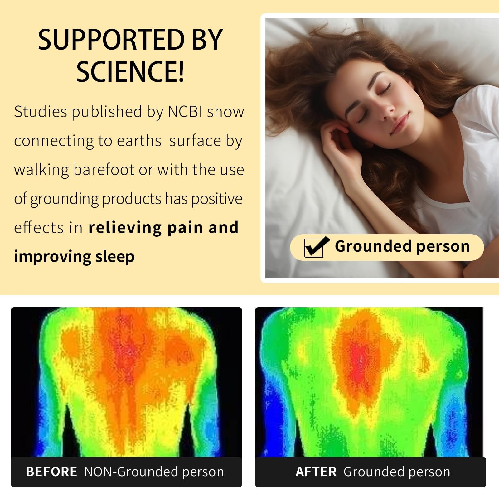 SIMPLE AND EFFICIENT SETUP - Save time by quickly connecting the grounding cord to our specially designed yoga-size grounding mat. Tailored for type B USA wall sockets. BUNDLE AND OPTIMIZE YOUR SAVINGS - Share the benefits of grounding with our bundled kit. Each kit includes 1 large yoga-size grounding mat, 1 grounding cord, 1 grounding splitter, 1 outlet testers and 1 bonus lava rock bracelets. CARBON-INFUSED FOR ENHANCED CONDUCTIVITY - Crafted from durable polyurethane infused with carbon, our grounding mats are highly conductive, breathable, and easy to clean. MAXIMUM BENEFITS WITH GENEROUS SIZE - The large yoga-size grounding mat allows you to experience the benefits of grounding during various activities and even while sleeping. RISK-FREE PURCHASE - Enjoy our lifetime manufacturer's warranty and 90-day return policy. We'll replace your grounding pad hassle-free if you're not satisfied. High-Quality Grounding Material Our Grounding Yoga Mat is crafted from durable, premium TPE foam and topped with soft, conductive vegan leather for ultimate comfort. It is free of PVC, latex, and odors, making it eco-friendly and safe for use. Measuring 71"x24" with a thickness of 1/4", the mat includes a 25-foot grounding cord for easy connection to a grounded electrical outlet. Harness the Power of Grounding Connect with the land's natural energy by standing barefoot or using our Grounding Yoga Mat. This direct contact allows the Earth's energy to flow into your body, penetrating cells and tissues to promote repair, regeneration, and overall well-being. Simple to Use Start by testing your wall outlet with the included Grounding Outlet Tester to ensure it is properly grounded. Then, connect your Grounding Yoga Mat to the Grounding Adapter Splitter and securely snap it onto the mat. (Compatible with Type B wall outlets only.) Once set up, simply touch the mat to begin grounding. COMPLETE KIT: 1 Grounding Yoga Mat (71"x24" each),1 Grouding Coil Cords with in-line current limiting 50k ohm resistors (25') , 1 USA Safety Adaptor Splitter, 1 Outlet Checker and 1 Bonus Lava Rock Grounding Bracelet How to Test Watch the instructional video located in the sidebar below the product photos for a step-by-step demonstration. The video guides you through testing for continuity and performing a body voltage test with the grounding mat, showcasing its effectiveness in grounding the body.