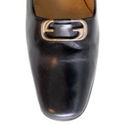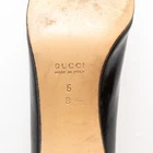 Gucci Black Leather High Heel Pumps with Horsebit Detail Black Enamel – Size US 6 / UK 3.5 Step into timeless sophistication with these classic black leather Gucci pumps, crafted in Italy with the brand’s signature finesse. Featuring a sleek silhouette with a pointed toe and high heel, these pumps are accented with gold-tone horsebit hardware for a refined touch. Details: • Brand: Gucci • Style: High heel pumps • Color: Black • Material: Leather upper, leather sole • Heel Height: Approx. 3.75 in / 9.5 cm • Size: US 6 / UK 3.5 / EU 36 / 23 cm • Made in Italy • Model Code: 101 4288 Condition: • Gently used vintage condition with natural signs of wear • Leather upper shows light creasing and small scuffs (see photos) • Soles show wear from use but are structurally sound • Hardware has light tarnishing consistent with age Please review all photos as they are part of the description. Shipping & Handling: • Ships within 1 business day • Carefully packed to preserve condition • Domestic and international shipping available Elevate your vintage luxury collection with these iconic Gucci heels — perfect for both professional and formal settings.