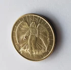 Same image repeats on both sides of this good luck medallion. Features an Angel standing over clouds with a halo above her, and spread out wings. Makes a beautiful gift.