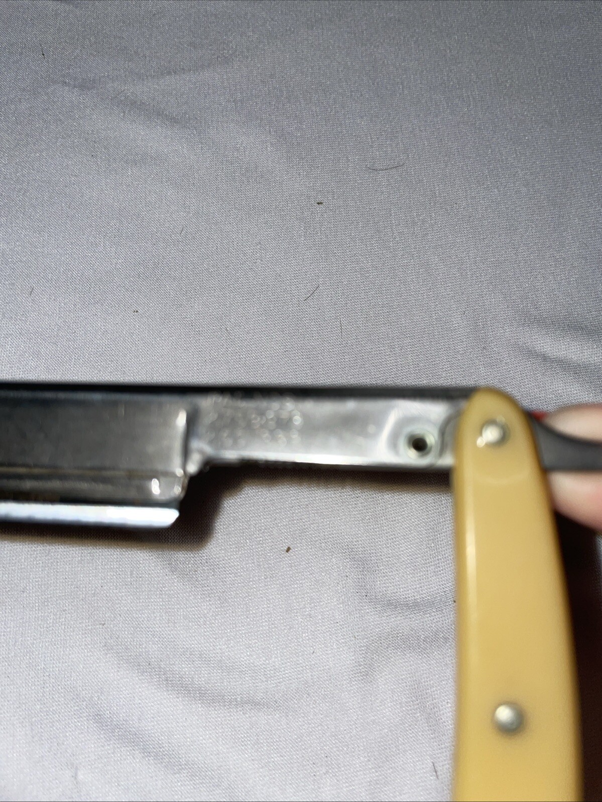 This is a Guarino straight razor made in Brooklyn NY. Blade is a little looser in the handle than it should be but overall is decent condition. The handle is plastic. I ship using USPS Ground Advantage within 2 business days of receiving payment. Thank you for looking 😊