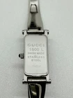 Case Material: Stainless Steel Features: Swiss Made Case Size: 12 mm Style: Casual, Classic, Dress/Formal Model: Gucci 1500L Reference Number: 1500L With Original Box/Packaging: Yes Brand: Gucci Custom Bundle: Yes Customized: No Type: Wristwatch Bezel Color: Silver Movement: Quartz Dial Color: Pink Case Color: Silver Bundle Description: Box. Closure: Buckle Band/Strap: Bracelet Department: Women Country/Region of Manufacture: Japan Watch Shape: Rectangle Seller Notes: “Please see photos and description.” Band Color: Silver Dial Pattern: Silver Max Wrist Size: 6.29 in (16 cm) Display: Analog Band Material: Stainless Steel Year Manufactured: 1990-1999 Water Resistance: Not Water Resistant