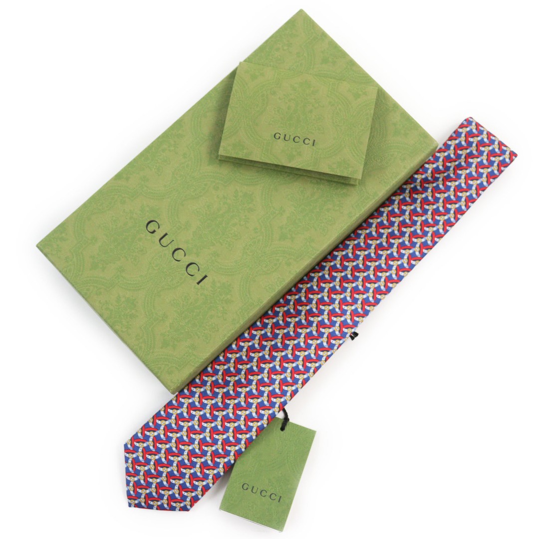Gucci Navy Silk Tie Belt Horsebit Pattern Men's Business Dress Accessories