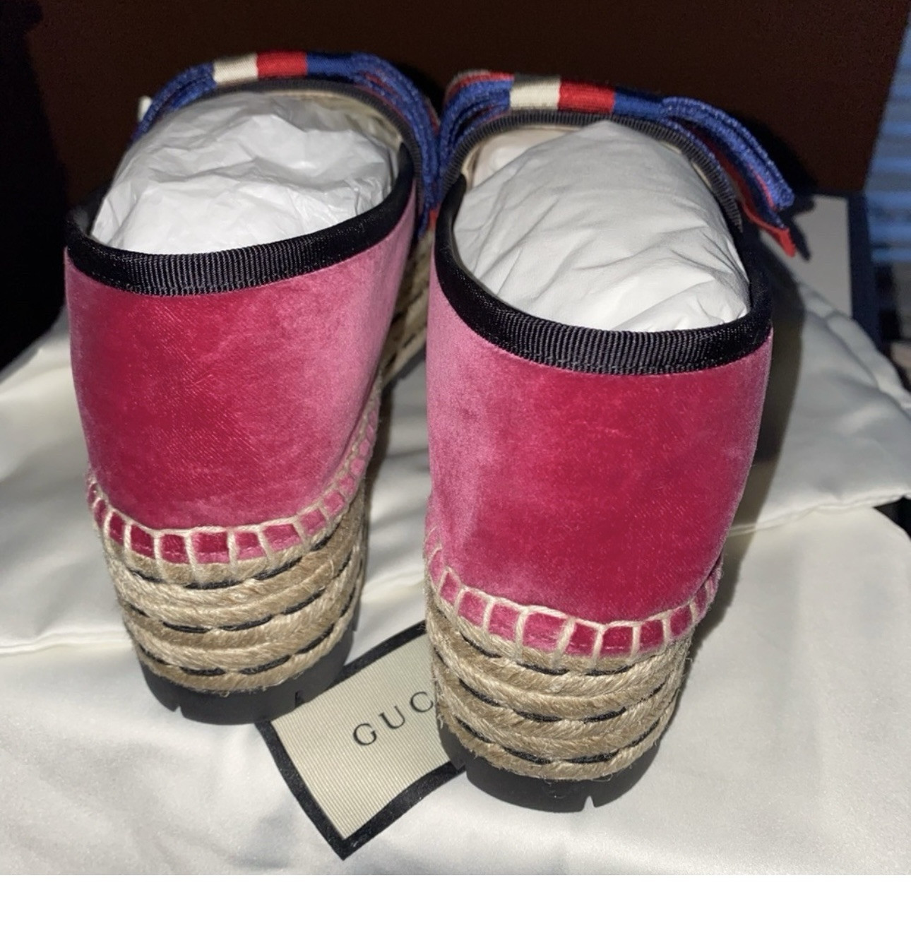 New 36.5,Gucci Shoes Gucci, Velvet Wedge Platform Espadrilles Bow. Condition is New with box. Shipped with USPS Priority Mail.
