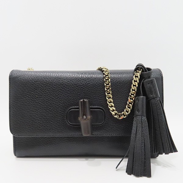 Size: width 25.5 CM/height 16 cm/width 8 cm/strap height 45 cm color: black accessories: dust/extra material Gucci (Gucci) 387611 black leather bamboo lock tassel chain shoulder bag [Incheon store]. The material is leather. There is 1 zipper pocket/2 small multi-purpose storage pockets on the inside.