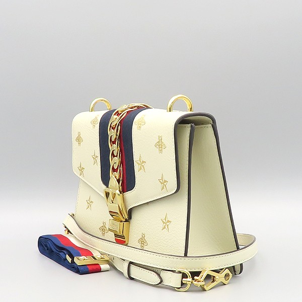 Size: 26 cm width/ 17 cm/ width 8 cm/ strap height ~62 cm; color: white accessories: dust/ booklet Gucci (Gucci) 524405 white leather Sylvie Vista small shoulder bag [Cheonan Shinsegae Store]. The material is leather. There is a zipper pocket on the inside. The store price is 4; 000; 000 won. Other than a slight feeling of use, the product is in very good condition.
