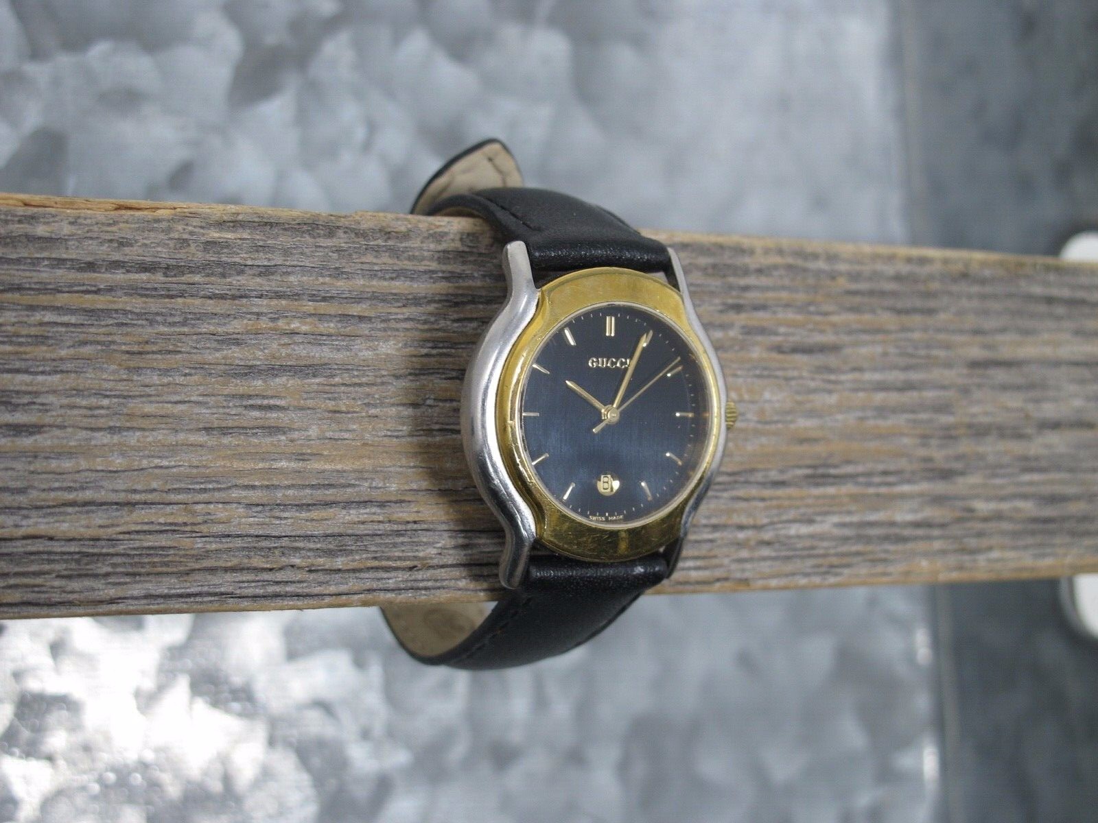 Authentic and Working, Gucci Womens 8000L Quartz Watch with Leather Band. Cosmetically in good, used condition as seen in the pictures. New Battery. Comes with black, leather Speidel band that may not be original. Case size is 29mm. Box A