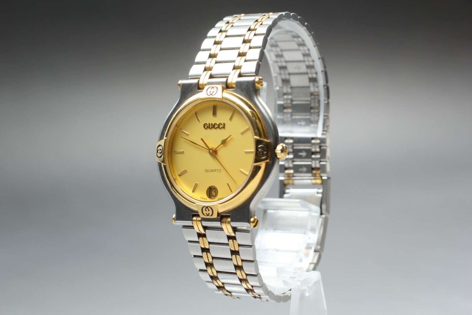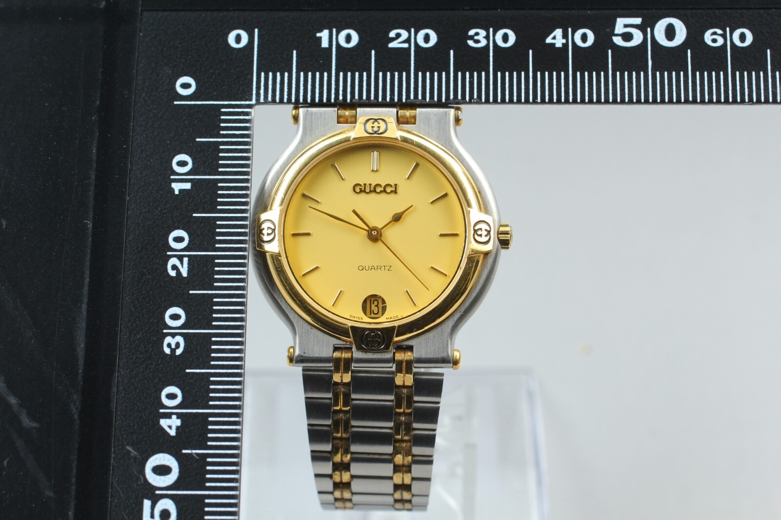 International Buyers Obon 2024 (Japan) Due to the upcoming OBON week public holiday in Japan, all orders submitted to this store between the 10th of August and the 18th of August will be delayed in processing until the 19th of August. *EXC+5* Gucci 9000M Gold Dial Date Quartz Men's Watch Swiss Made from JAPAN [ Description ] -Total Condition- EXCELLENT+++++ [ Appearance ] Tiny scuffs from normal use. *Please check photos. Band : MAX 16.5 cm = 6.496 inches [ Functional ] It works properly. Quick set(Date) : work well. [ What's included ] Only what is shown in the photos. Please understand. Total condition is subjective, so please judge to the pictures for more details. Please check the pictures and don't hesitate to ask any questions about the item! Thank you. #1471 [ Payment ] We accept PayPal, Visa, MasterCard, American Express and Discover. Payment is due within 5 days of the auction end. We will ship the item 3 business days after your payment clears. [ Shipping ] I send a product by DHL or EMS. I attach the tracking number. Please bid it without worrying. Shipping is only available to the address registered in ebay. Please note that any address not registered in ebay is not acceptable to ship. Shipping is available from Monday to Friday. Weekends are not available because office is closed. [ Returns ] Unconditional Return Policy Customer service and satisfaction are very important to us. I have an unconditional return policy if notified within 30 of the receipt of the item. All returned items must be the original condition. All return requests must be made within 30 days of the receipt of the item. Please contact me first for return before you ship it back to me. The postage of the returned goods is a buyer burden. [ Internatinal Buyers ] Please Note: Import duties, taxes, and charges are not included in the item price or shipping cost. These charges are the buyer's responsibility. Please check with your country's customs office to determine what these additional costs will be prior to bidding or buying. The condition of all products is selected by individual subjectivity. Please look at the pictures carefully to make a decision. We sell the item as described on the listing but some items are old watches so If the item is a QZ watch, then if it becomes out of battery on the way to your hand, please replace the battery by yourself. (we are basically selling working product.) Save on shipping costs by purchasing at the same time. See more Click here See other watches See more Click here eBay listing template by 3D sellers.com - Try for Free!