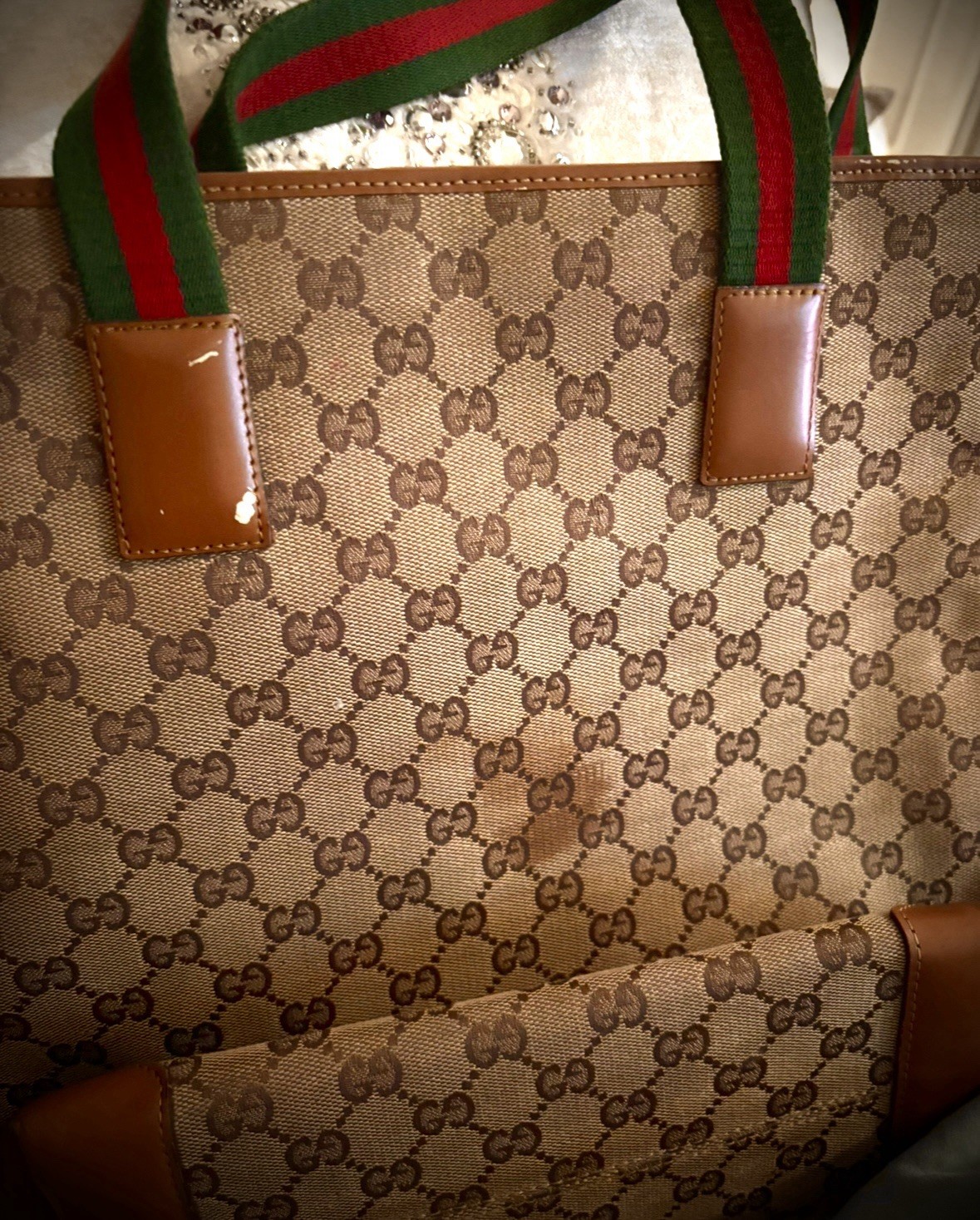 Inspired Gucci PVC Leather Tote Bag in beige brown is a stylish and sophisticated choice for women. Made in Italy, this medium-sized bag features gold hardware accents and a sturdy canvas lining. The brown leather handles add a touch of luxury to the design, making it a versatile accessory for everyday use. With its classic tote style and high-quality exterior, this Gucci bag is a perfect blend of elegance and practicality.