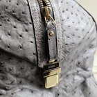 Elevate your travel style with this stunning Gucci Aviatrix Large Weekender Boston Bag, crafted from genuine ostrich leather in an elegant gray tone. A rare and sophisticated piece, this luxury bag is perfect for those who appreciate bold design and premium craftsmanship. Features: Authentic Gucci – Serial/Style Number: 186232 / 492783 Made in Italy Rich gray genuine ostrich leather with signature ostrich quill texture Gold-tone hardware with Gucci crest detail at the front Dual rolled leather handles for comfortable carry Full zip closure with padlock and leather pull tab (engraved "Gucci") Spacious interior with soft suede lining Luggage tag and protective metal feet Approximate Dimensions: Length: 16 inches Height: 10 inches Depth: 8 to 10 inches Condition: Very good pre-owned condition. Light signs of wear consistent with age. Hardware is bright with minimal surface scratches. Leather and interior are clean and well cared for. Could use a reconditioning. This is a rare collector’s piece and a bold travel companion that blends classic Gucci heritage with standout luxury materials. Ships with care and tracking. Feel free to message with any questions!