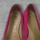 All the luxury you'd expect from Gucci in a simple design. These ballet flats done up in pink suede are comfortable, fashionable and fun.