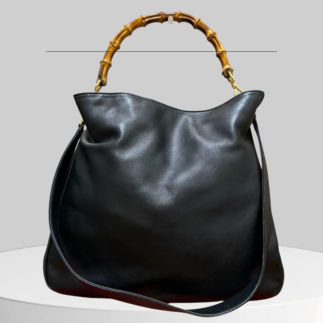 Gucci Bamboo 2Way Leather Tote Bag Black with Shoulder Strap Key Features - Vintage shoulder bag with a large capacity, suitable for business or casual use - Made of all leather in black color - Features gold-tone hardware accents - Dimensions: Bag Width: 14.9 inches, Bag Height: 12.2 inches, Bag Depth: 3.5 inches - Handle/Strap: 31.1 inches long, with a 17.3-inch handle drop - Includes a shoulder strap for versatile wear - Condition: Cleaned interior, minor color fading on four corners, professionally retouched, still in good condition for continued use - Authentic product, purchased from authorized stores or certified markets - Model: Vintage crossbody/shoulder bag - Closure: Not specified - Country/Region of Manufacture: Not specified - Features: Large capacity, versatile style, suitable for various occasions - Material: All leather - Handle Style: Top handle and shoulder strap - Shape: Rectangular - Pattern: Solid black Specifications Brand Gucci Country Japan Product Description Item Title Gucci Bamboo 2Way Leather Tote Bag With Shoulder Black Payment Supports managed payments Please pay within 5 days after auction is finished. About Us We are located in Japan. It's our pleasure to make you happy by proposing our recommend item. If you have any questions or request about items, please feel free to ask us. International Buyers - Please Note: -Import duties, taxes, and charges are not included in the item price or shipping charges. These charges are the buyer's responsibility. -Please check with your country's customs office to determine what these additional costs will be prior to bidding/buying. -These charges are normally collected by the delivering freight (shipping) company or when you pick the item up - do not confuse them for additional shipping charges. -We do not mark merchandise values below value or mark items as - gifts - The US and International government regulations prohibit such behavior. Thank you for your understanding.