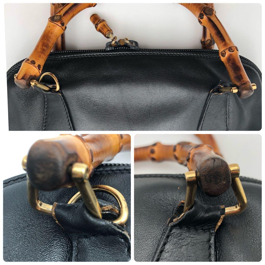 Gucci Bamboo Leather Handbag 2Way Black, Shoulder Strap Included Key Features - Brand: Gucci - Product Type: Bamboo Leather Handbag - Model: Not specified - Style: 2Way Shoulder Bag - Exterior Color: Black - Material: Leather - Closure: Zipper - Size: approximately 9.8 inches (Width) x 7.5 inches (Height) x 3.5 inches (Depth) - Handle: approximately 11.4 inches (Handle Drop) - Shoulder Strap: approximately 43.3 inches (Strap Length) - Accessories: External strap missing (comes with an aftermarket strap as a bonus) - Condition: Used, interior peeling removed, some scratches on bottom exterior leather, handle root slightly inside due to leather shrinkage, exterior leather otherwise in good condition - Additional notes: Comes with an aftermarket strap due to missing original; interior lining shows some discoloration after removal of peeling; zipper is firm. - Country/Region of Manufacture: Italy - Notes: Please Specifications Brand Gucci Country Japan Product Description Item Title Gucci Bamboo Handbag Leather 2Way Black Payment Supports managed payments Please pay within 5 days after auction is finished. About Us We are located in Japan. It's our pleasure to make you happy by proposing our recommend item. If you have any questions or request about items, please feel free to ask us. International Buyers - Please Note: -Import duties, taxes, and charges are not included in the item price or shipping charges. These charges are the buyer's responsibility. -Please check with your country's customs office to determine what these additional costs will be prior to bidding/buying. -These charges are normally collected by the delivering freight (shipping) company or when you pick the item up - do not confuse them for additional shipping charges. -We do not mark merchandise values below value or mark items as - gifts - The US and International government regulations prohibit such behavior. Thank you for your understanding.