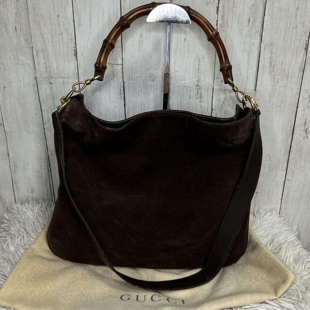Gucci 2Way Bamboo Leather Shoulder Bag Suede Logo Used Key Features - Brand: Gucci - Product Type: 2-way Shoulder Bag with Bamboo Leather Strap - Model: 001.1781 - Color: Brown - Exterior Material: Leather - Size: Bag Height: 12.6 inches, Bag Width: 15 inches, Bag Depth: 3.9 inches - Handle/Strap: Bamboo Leather Strap, Strap Drop: approximately 9.8 inches - Features: Vintage design, with some scratches, stains, shape distortion, and peeling on the inner lining, indicating used condition - Closure: Not specified - Accessories: None included - Country/Region of Manufacture: Not specified - Condition: Used, showing signs of wear including scratches, stains, shape distortion, and peeling on the inner lining - Additional notes: Please understand the vintage condition before purchasing. - Price discounts available for follow-up comments on Mercari and bulk purchases. Specifications Brand Gucci Country Japan Product Description Item Title Gucci 2Way Bamboo Leather Shoulder Bag Suede Logo Payment Supports managed payments Please pay within 5 days after auction is finished. About Us We are located in Japan. It's our pleasure to make you happy by proposing our recommend item. If you have any questions or request about items, please feel free to ask us. International Buyers - Please Note: -Import duties, taxes, and charges are not included in the item price or shipping charges. These charges are the buyer's responsibility. -Please check with your country's customs office to determine what these additional costs will be prior to bidding/buying. -These charges are normally collected by the delivering freight (shipping) company or when you pick the item up - do not confuse them for additional shipping charges. -We do not mark merchandise values below value or mark items as - gifts - The US and International government regulations prohibit such behavior. Thank you for your understanding.