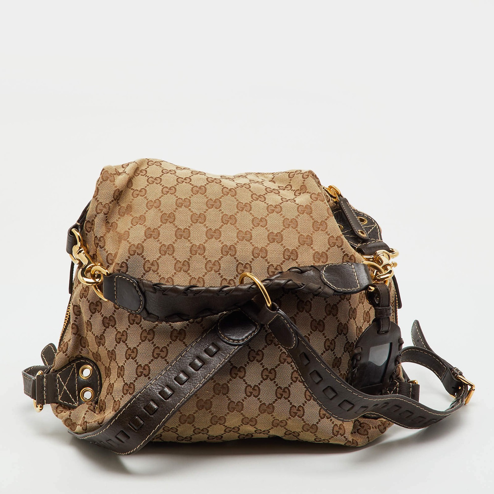 Our eBay Store About Us Contact Us Add to Favorite Sellers Gucci BeigeBrown GG Canvas and Leather Medium Darwin Convertible Backpack Blending classic Monogram canvas with luxe leather accents, this Gucci backpack transitions seamlessly between function and fashion. Wear it as a backpack or shoulder bag, either way, it brings timeless elegance to your everyday look. Product Details Brand Gucci Includes The Luxury Closet Packaging Certified by The Luxury Closet This item has gone through a detailed authentication process overseen by our experts. We offer a lifetime guarantee of authenticity on all our items. How We Check The in-house team of experts at The Luxury Closet is highly trained to verify the authenticity and the condition of the luxury products. They ensure that only 100% authentic items are put on sale.The evaluation process is unique with its own mix of assessment criteria and differs according to the category. Each item is evaluated based on the following combination of hallmarks, hardware, stitching, symmetry, material, craftsmanship, stamping, codes, hologram stickers, and packaging. Our authenticators also check if the items have been modified or amended (e.g., aftermarket diamonds, replaced batteries, repaired bags, etc.) Please note that this handbag may have a perfume scent, as it was stored and packaged in Dubai where such fragrances are commonly used. International Buyers Import duties, taxes and charges are not included in the item price. These charges are the buyers responsibility. Please check with your country’s customs office to determine what these additional cost will be prior to buying.
