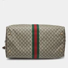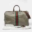 Our eBay Store About Us Contact Us Add to Favorite Sellers Gucci BeigeBrown GG Supreme Canvas and Leather Large Savoy Duffle Bag Ensure your travel essentials are in order and your outfit is complete with this Gucci bag. Crafted using the best materials, the bag carries the maison's signature of artful craftsmanship and enduring appeal. Product Details Brand Gucci Material Not Available Color Beige Includes Original Dustbag, Info Booklet, Padlock & Key, Detachable Strap Certified by The Luxury Closet This item has gone through a detailed authentication process overseen by our experts. We offer a lifetime guarantee of authenticity on all our items. How We Check The in-house team of experts at The Luxury Closet is highly trained to verify the authenticity and the condition of the luxury products. They ensure that only 100% authentic items are put on sale.The evaluation process is unique with its own mix of assessment criteria and differs according to the category. Each item is evaluated based on the following combination of hallmarks, hardware, stitching, symmetry, material, craftsmanship, stamping, codes, hologram stickers, and packaging. Our authenticators also check if the items have been modified or amended (e.g., aftermarket diamonds, replaced batteries, repaired bags, etc.) International Buyers Import duties, taxes and charges are not included in the item price. These charges are the buyers responsibility. Please check with your country’s customs office to determine what these additional cost will be prior to buying.