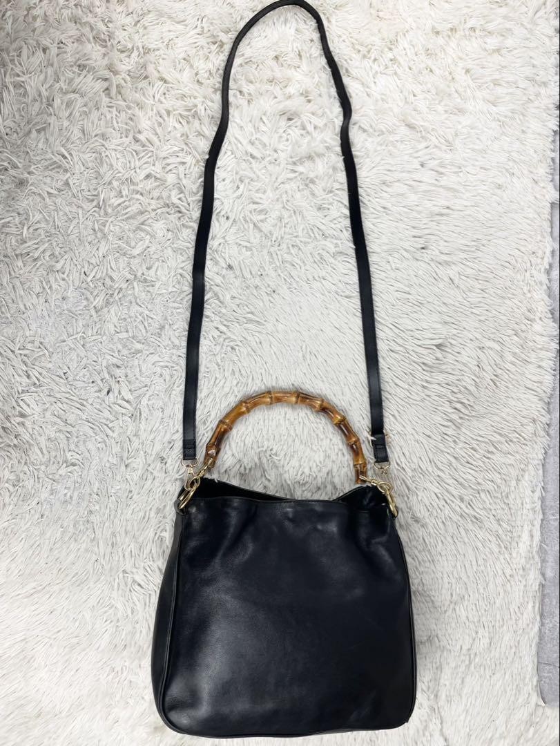 Gucci Leather 2Way Shoulder Bag Black Bamboo Magnet Used Key Features - Gucci leather handbag, versatile 2-way tote and shoulder bag, crossbody style - Features bamboo accents, embossed logo, gold-tone hardware, and magnetic closure - Color: Black; Material: Leather; Size: approximately 9.45" (24cm) high, 11.81" (30cm) wide, 3.15" (8cm) depth; Handle: 15.75" (40cm); Shoulder strap: 27.56-51.18" (70-130cm); Strap is aftermarket - Vintage condition with minor corner wear; interior has been re-lined but remains functional - Authentic Gucci item, verified with proper license; high-quality, glossy canvas-like finish - Spacious interior fits phone, wallet, cosmetics, and more; ideal for daily use - No accessories are included unless noted in the title or product description. If you have any questions, please ask before purchasing. Specifications Brand Gucci Country Japan Exterior Material Leather Style Shoulder Bag Exterior Color Black Material Leather Color Black Product Description Item Title Gucci Leather 2Way Shoulder Bag Bamboo Magnet Black Payment Supports managed payments Please pay within 5 days after auction is finished. About Us We are located in Japan. It's our pleasure to make you happy by proposing our recommend item. If you have any questions or request about items, please feel free to ask us. International Buyers - Please Note: -Import duties, taxes, and charges are not included in the item price or shipping charges. These charges are the buyer's responsibility. -Please check with your country's customs office to determine what these additional costs will be prior to bidding/buying. -These charges are normally collected by the delivering freight (shipping) company or when you pick the item up - do not confuse them for additional shipping charges. -We do not mark merchandise values below value or mark items as - gifts - The US and International government regulations prohibit such behavior. Thank you for your understanding.