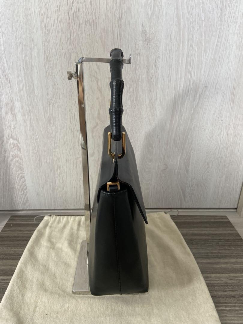 Gucci Handbag Bamboo Leather Black 9.1in x 9.4in x 3.9in Formal Storage Bag Key Features Gucci Bamboo Leather Handbag - Brand: Gucci - Style: Handbag - Model: Bamboo Leather Bag - Exterior Material: Leather - Exterior Color: Black - Handle Style: Top Handle - Closure: Open - Size: Bag Height approximately 9.1 inches, Width approximately 9.4 inches, Depth approximately 3.9 inches - Handle/Strap Drop: Approximately 4.7 inches - Hardware Color: Gold - Features: Classic bamboo accents, structured shape - Condition: Used with minor dirt, stains, slight color fading, and some scratches on metal parts. Interior top opening has adhesive marks between suede and bag body. Overall good condition, suitable for long-term use. Please review photos for details. - Accessories: Gucci dust bag - Country/Region of Manufacture: Italy - Additional info: Authentic, verified by professional appraisal. Slight imperfections due to use, consistent with vintage items. Specifications Brand Gucci Country Japan Product Description Item Title Gucci Handbag Bamboo Leather Black Handheld Formal Storage Bag Payment Supports managed payments Please pay within 5 days after auction is finished. About Us We are located in Japan. It's our pleasure to make you happy by proposing our recommend item. If you have any questions or request about items, please feel free to ask us. International Buyers - Please Note: -Import duties, taxes, and charges are not included in the item price or shipping charges. These charges are the buyer's responsibility. -Please check with your country's customs office to determine what these additional costs will be prior to bidding/buying. -These charges are normally collected by the delivering freight (shipping) company or when you pick the item up - do not confuse them for additional shipping charges. -We do not mark merchandise values below value or mark items as - gifts - The US and International government regulations prohibit such behavior. Thank you for your understanding.
