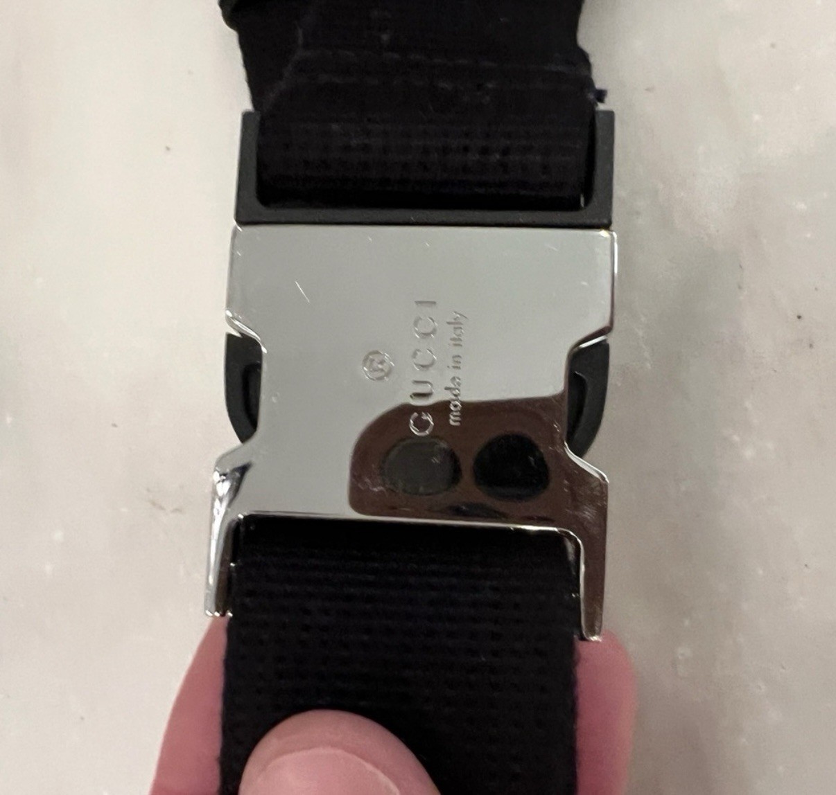 Barely Used Gucci Leather Embossed Belt Bag. No longer available on website. No stains, discolorations or flaws. Non smoking/ pet free home. Paid $1450. Belt size 100
