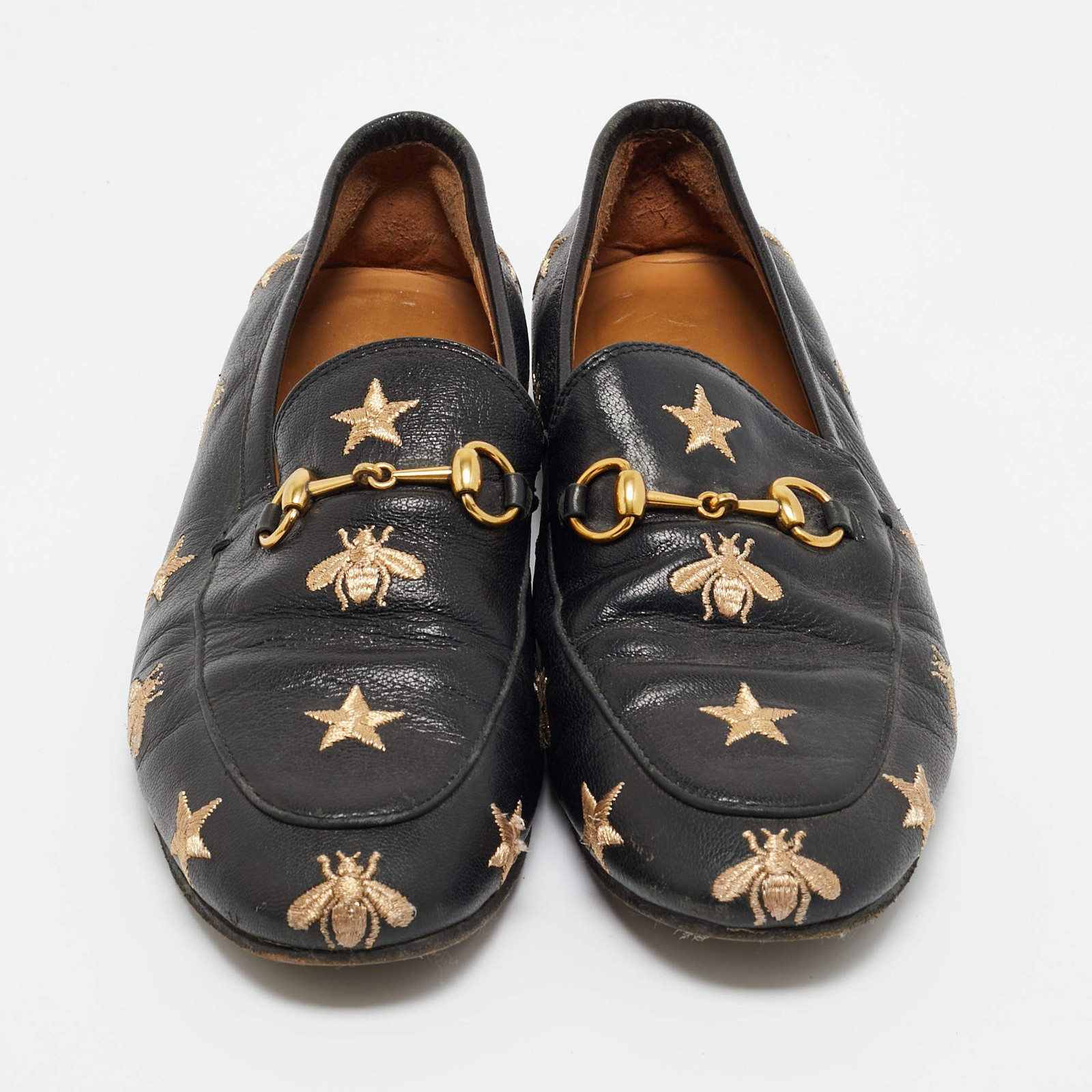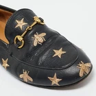 Our eBay Store About Us Contact Us Add to Favorite Sellers Gucci Black Leather Embroidered Bee Star Horsebit Slip On Loafers Size 39 Gucci created these special loafers for special people like yourself. The pair comes expertly crafted from black leather and is designed with embroidery of bees and stars, Horsebit details on the uppers, and leather outsoles for durability. Product Details Brand Gucci Color Black Includes The Luxury Closet Packaging Outsole Length 26.5 cm Outsole Width 8.5 cm Size 39 Certified by The Luxury Closet This item has gone through a detailed authentication process overseen by our experts. We offer a lifetime guarantee of authenticity on all our items. How We Check The in-house team of experts at The Luxury Closet is highly trained to verify the authenticity and the condition of the luxury products. They ensure that only 100% authentic items are put on sale.The evaluation process is unique with its own mix of assessment criteria and differs according to the category. Each item is evaluated based on the following combination of hallmarks, hardware, stitching, symmetry, material, craftsmanship, stamping, codes, hologram stickers, and packaging. Our authenticators also check if the items have been modified or amended (e.g., aftermarket diamonds, replaced batteries, repaired bags, etc.) International Buyers Import duties, taxes and charges are not included in the item price. These charges are the buyers responsibility. Please check with your country’s customs office to determine what these additional cost will be prior to buying.