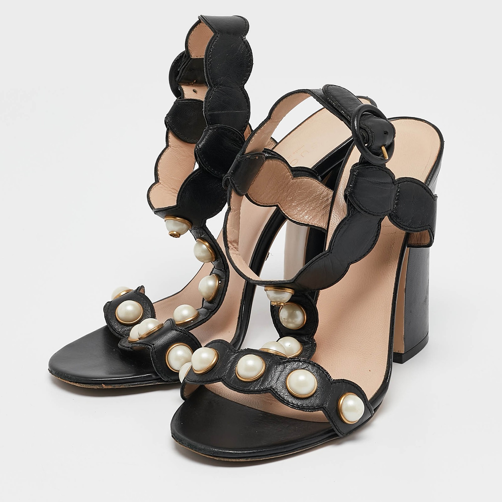 These sandals will frame your feet in an elegant manner. Crafted from quality materials, they flaunt a classy display, comfortable insoles and durable heels.Certified by The Luxury Closet - This item has gone through a detailed authentication process overseen by our experts. We offer a lifetime guarantee of authenticity on all our items. Import duties, taxes and charges are not included in the item price. These charges are the buyers responsibility. Please check with your country’s customs office to determine what these additional cost will be prior to buying. Our eBay Store About Us Contact Us Add to Favorite Sellers Gucci Black Leather Faux Pearl Willow T-Strap Block Heel Sandals Size 37.5 $224.4 These sandals will frame your feet in an elegant manner. Crafted from quality materials, they flaunt a classy display, comfortable insoles and durable heels. Product Details Brand Color Black Dimensions Material Leather Size 37.5 Outsole Width 8.5 cm Outsole Length 23 cm Heel Height 11 cm Includes Original Dustbag Certified by The Luxury Closet This item has gone through a detailed authentication process overseen by our experts. We offer a lifetime guarantee of authenticity on all our items. How We Check The in-house team of experts at The Luxury Closet is highly trained to verify the authenticity and the condition of the luxury products. They ensure that only 100% authentic items are put on sale.The evaluation process is unique with its own mix of assessment criteria and differs according to the category. Each item is evaluated based on the following combination of hallmarks, hardware, stitching, symmetry, material, craftsmanship, stamping, codes, hologram stickers, and packaging. Our authenticators also check if the items have been modified or amended (e.g., aftermarket diamonds, replaced batteries, repaired bags, etc.) International Buyers Import duties, taxes and charges are not included in the item price. These charges are the buyers responsibility. Please check with your country’s customs office to determine what these additional cost will be prior to buying.