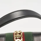 Indulge in timeless elegance with this exquisite black handbag, a perfect blend of luxurious leather and fabric. Made in Italy, its sleek silhouette is adorned with sophisticated web detailing. The adjustable shoulder strap offers versatile wear options, while the plush Alcantara interior promises high end comfort. This exclusive accessory is designed for women who appreciate refined workmanship and a touch of classic allure. Perfectly sized for all your essentials, it reflects an understated yet impactful style statement.Certified by The Luxury Closet - This item has gone through a detailed authentication process overseen by our experts. We offer a lifetime guarantee of authenticity on all our items. Import duties, taxes and charges are not included in the item price. These charges are the buyers responsibility. Please check with your country’s customs office to determine what these additional cost will be prior to buying. Our eBay Store About Us Contact Us Add to Favorite Sellers Gucci Black Leather Medium Web Sylvie Top Handle Bag $734.8 Indulge in timeless elegance with this exquisite black handbag, a perfect blend of luxurious leather and fabric. Made in Italy, its sleek silhouette is adorned with sophisticated web detailing. The adjustable shoulder strap offers versatile wear options, while the plush Alcantara interior promises high end comfort. This exclusive accessory is designed for women who appreciate refined workmanship and a touch of classic allure. Perfectly sized for all your essentials, it reflects an understated yet impactful style statement. Product Details Brand Color Black Dimensions Material Fabric, Leather Size Medium Outsole Width Outsole Length Heel Height Includes Certified by The Luxury Closet This item has gone through a detailed authentication process overseen by our experts. We offer a lifetime guarantee of authenticity on all our items. How We Check The in-house team of experts at The Luxury Closet is highly trained to verify the authenticity and the condition of the luxury products. They ensure that only 100% authentic items are put on sale.The evaluation process is unique with its own mix of assessment criteria and differs according to the category. Each item is evaluated based on the following combination of hallmarks, hardware, stitching, symmetry, material, craftsmanship, stamping, codes, hologram stickers, and packaging. Our authenticators also check if the items have been modified or amended (e.g., aftermarket diamonds, replaced batteries, repaired bags, etc.) International Buyers Import duties, taxes and charges are not included in the item price. These charges are the buyers responsibility. Please check with your country’s customs office to determine what these additional cost will be prior to buying.