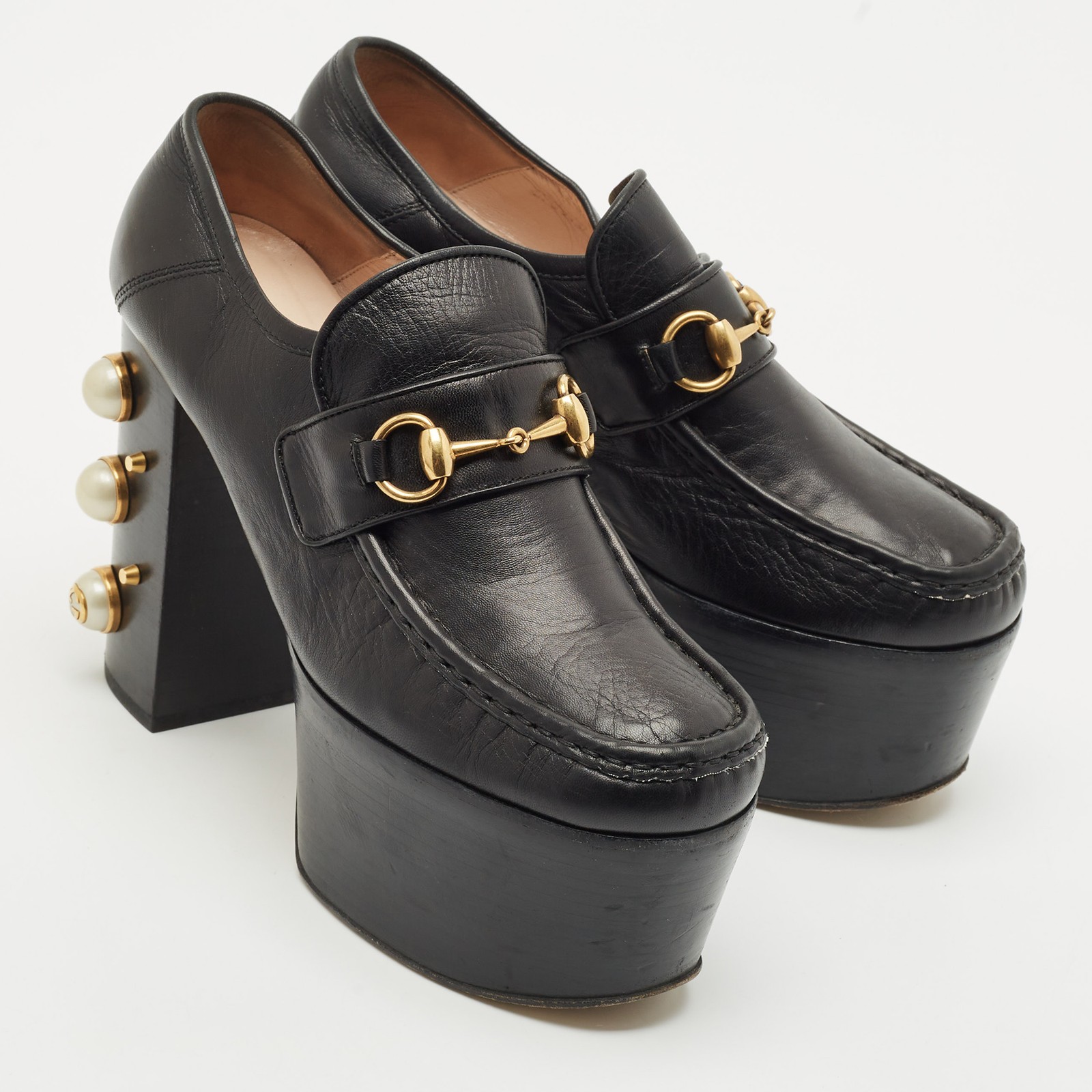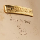 Bold and luxurious, these Gucci Vegas pumps combine loafer inspired design with high fashion drama. Crafted from smooth black leather, they feature a towering platform heel and are adorned with signature faux pearls and gold tone studs—delivering a perfect blend of classic elegance and modern edge.Certified by The Luxury Closet - This item has gone through a detailed authentication process overseen by our experts. We offer a lifetime guarantee of authenticity on all our items. Import duties, taxes and charges are not included in the item price. These charges are the buyers responsibility. Please check with your country’s customs office to determine what these additional cost will be prior to buying. Our eBay Store About Us Contact Us Add to Favorite Sellers Gucci Black Leather Pearl Studded Vegas Platform Loafer Pumps Size 39 $500.5 Bold and luxurious, these Gucci Vegas pumps combine loafer inspired design with high fashion drama. Crafted from smooth black leather, they feature a towering platform heel and are adorned with signature faux pearls and gold tone studs—delivering a perfect blend of classic elegance and modern edge. Product Details Brand Color Black Dimensions Material Leather Size 39 Outsole Width Outsole Length Heel Height Includes Certified by The Luxury Closet This item has gone through a detailed authentication process overseen by our experts. We offer a lifetime guarantee of authenticity on all our items. How We Check The in-house team of experts at The Luxury Closet is highly trained to verify the authenticity and the condition of the luxury products. They ensure that only 100% authentic items are put on sale.The evaluation process is unique with its own mix of assessment criteria and differs according to the category. Each item is evaluated based on the following combination of hallmarks, hardware, stitching, symmetry, material, craftsmanship, stamping, codes, hologram stickers, and packaging. Our authenticators also check if the items have been modified or amended (e.g., aftermarket diamonds, replaced batteries, repaired bags, etc.) International Buyers Import duties, taxes and charges are not included in the item price. These charges are the buyers responsibility. Please check with your country’s customs office to determine what these additional cost will be prior to buying.