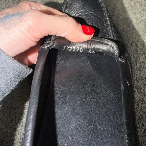 Gucci Black Leather women’s Loafers with silver G G accent