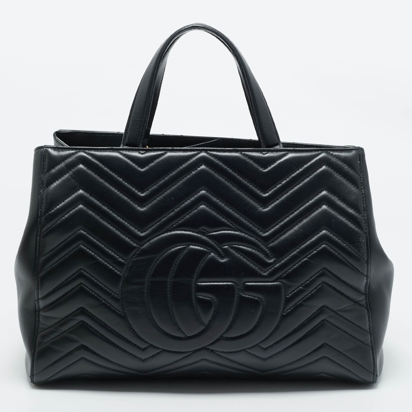 Roomy, plush, and endlessly versatile. The Marmont tote pairs soft matelassé leather with gold GG for a look that can go from work to lunch without missing a beat.Certified by The Luxury Closet - This item has gone through a detailed authentication process overseen by our experts. We offer a lifetime guarantee of authenticity on all our items. Import duties, taxes and charges are not included in the item price. These charges are the buyers responsibility. Please check with your country’s customs office to determine what these additional cost will be prior to buying. Our eBay Store About Us Contact Us Add to Favorite Sellers Gucci Black Matelasse Leather Medium GG Marmont Tote $1122 Roomy, plush, and endlessly versatile. The Marmont tote pairs soft matelassé leather with gold GG for a look that can go from work to lunch without missing a beat. Product Details Brand Color Black Dimensions Material Leather Size Medium Outsole Width Outsole Length Heel Height Includes Certified by The Luxury Closet This item has gone through a detailed authentication process overseen by our experts. We offer a lifetime guarantee of authenticity on all our items. How We Check The in-house team of experts at The Luxury Closet is highly trained to verify the authenticity and the condition of the luxury products. They ensure that only 100% authentic items are put on sale.The evaluation process is unique with its own mix of assessment criteria and differs according to the category. Each item is evaluated based on the following combination of hallmarks, hardware, stitching, symmetry, material, craftsmanship, stamping, codes, hologram stickers, and packaging. Our authenticators also check if the items have been modified or amended (e.g., aftermarket diamonds, replaced batteries, repaired bags, etc.) International Buyers Import duties, taxes and charges are not included in the item price. These charges are the buyers responsibility. Please check with your country’s customs office to determine what these additional cost will be prior to buying.