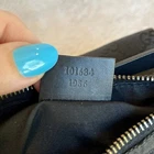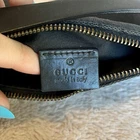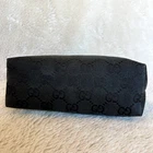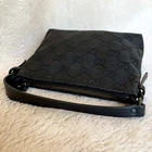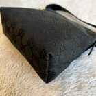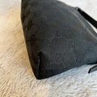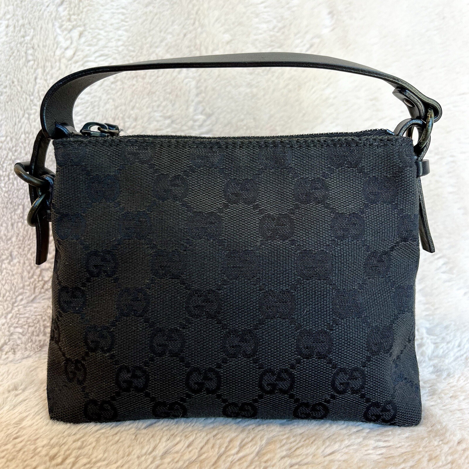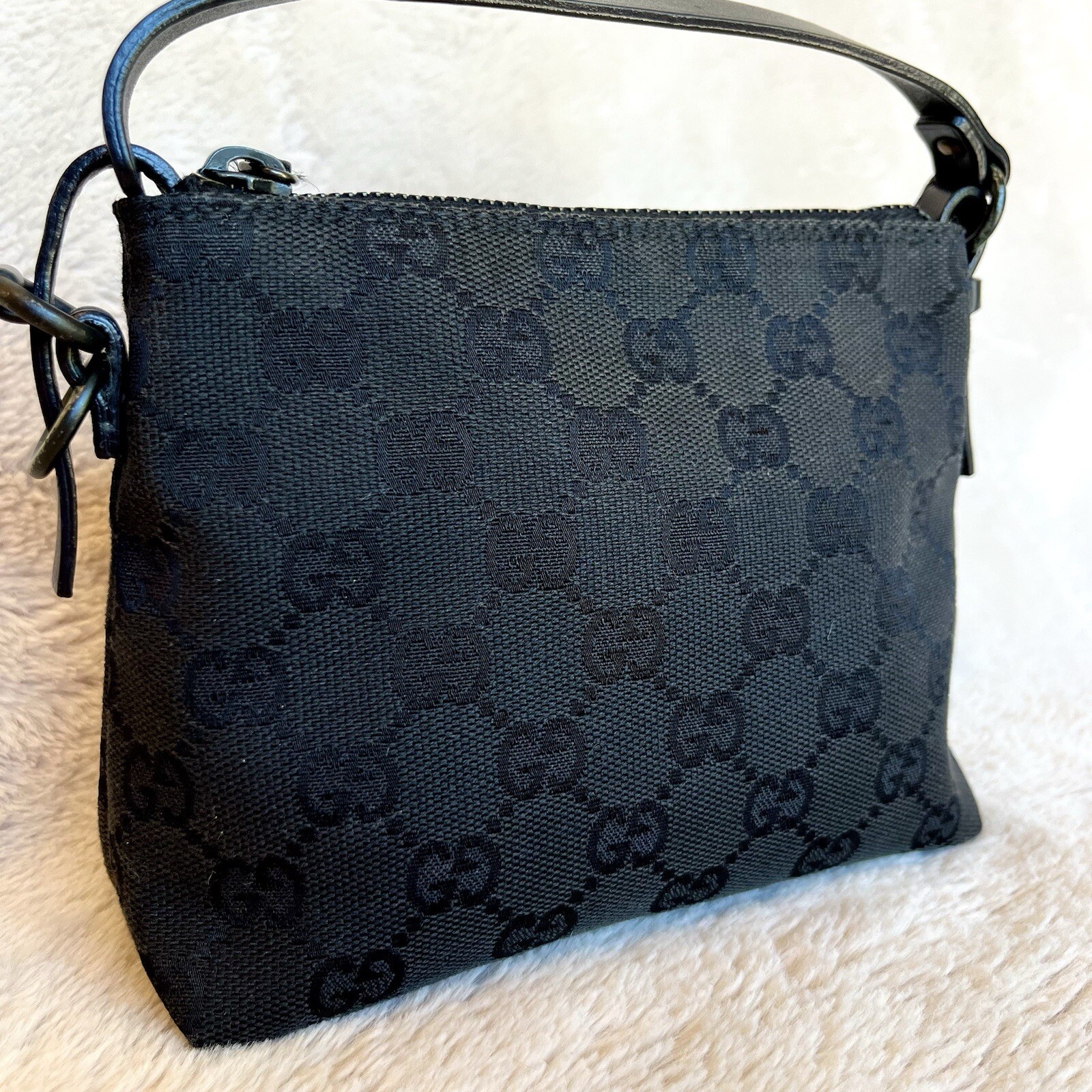 Gucci Black Monogram Supreme Canvas Mini Tote Bag. Classic and timeless Gucci interlocking GG monogram canvas bag with leather handles in all black. Adorable little mini handbag, or could be used as a pouch or travel case. Zip top closure. Black hardware. Dimensions: 6.5 x 5.5 x 3 inches In fair-good preowned condition. Some fading on the exterior canvas. Scratches on the hardware.