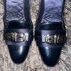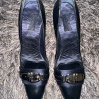 Gucci Black Patent Leather Silver Buckle Blue Accent Heels EU 36 C