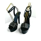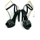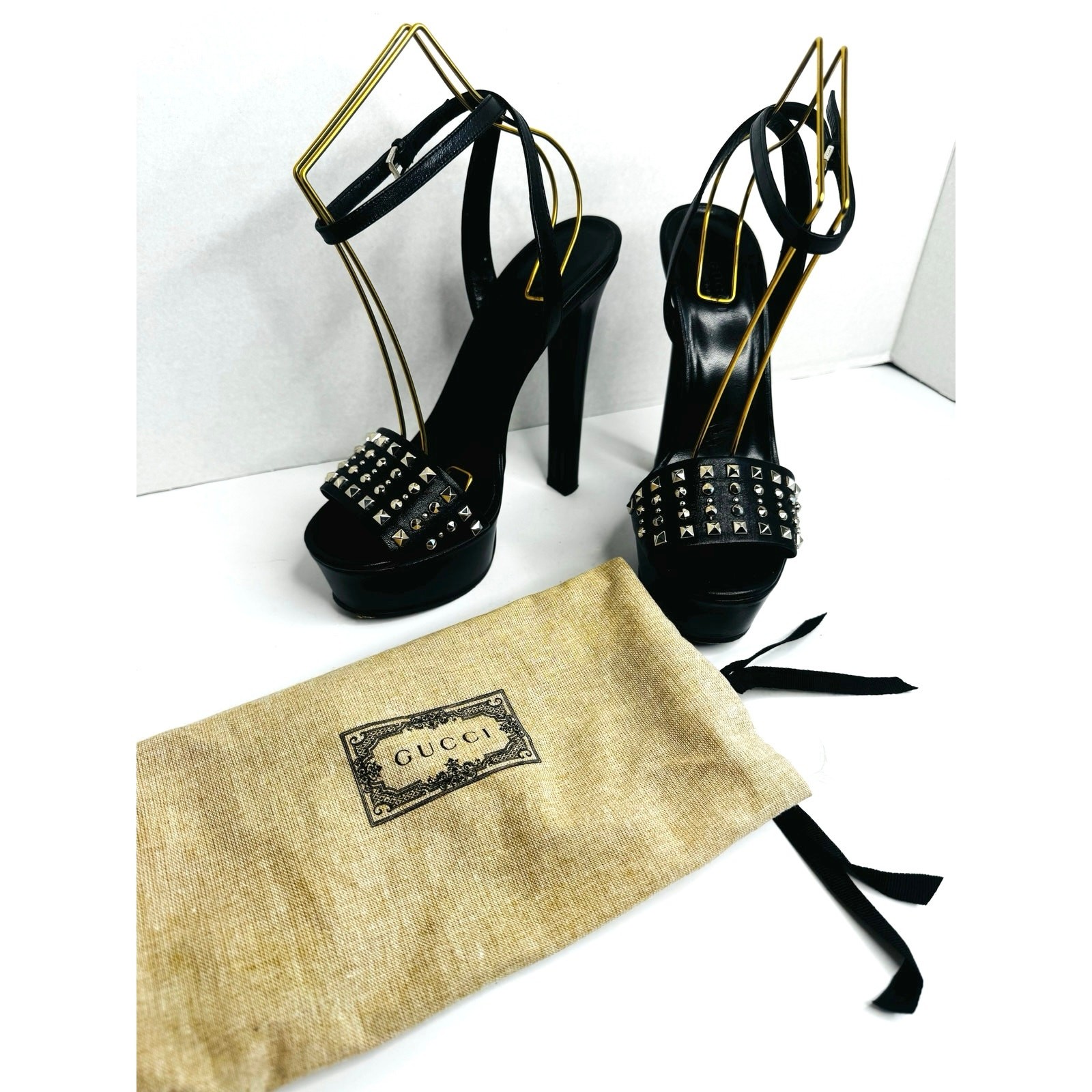 Gucci Black Studded Leila Platform Ankle Strap Heels EU 38.5 – Statement Designer Platform Pumps Excellent Preowned condition! Minor wear to bottom soles Dustbags included 6 “ heel 2” platform Crafted in smooth black leather, these striking heels feature gold-tone stud detailing, a secure ankle strap, and a dramatic platform silhouette that offers both height and comfort. The Leila style combines edgy elegance with iconic Gucci craftsmanship, making them perfect for special events, night-out styling, or elevating any fashion-forward wardrobe. A standout choice for collectors and luxury shoe lovers alike. Measurements are approximate Gucci Leila heels, Gucci studded platform pumps, black ankle strap heels, Gucci shoes EU 38.5, designer platform heels, luxury studded heels, Gucci statement shoes, black leather platform heels, collectible Gucci heels, high fashion footwear.