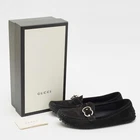 Crafted from soft black suede, these pre loved Gucci womens loafers offer an easy slip on style with a classic, understated look. Theyre perfect for polished everyday wear.Certified by The Luxury Closet - This item has gone through a detailed authentication process overseen by our experts. We offer a lifetime guarantee of authenticity on all our items. Import duties, taxes and charges are not included in the item price. These charges are the buyers responsibility. Please check with your country’s customs office to determine what these additional cost will be prior to buying. Our eBay Store About Us Contact Us Add to Favorite Sellers Gucci Black Suede Slip On Loafers Size 38.5 $185.9 Crafted from soft black suede, these pre loved Gucci womens loafers offer an easy slip on style with a classic, understated look. Theyre perfect for polished everyday wear. Product Details Brand Color Black Dimensions Material Suede Size 38.5 Outsole Width Outsole Length Heel Height Includes Certified by The Luxury Closet This item has gone through a detailed authentication process overseen by our experts. We offer a lifetime guarantee of authenticity on all our items. How We Check The in-house team of experts at The Luxury Closet is highly trained to verify the authenticity and the condition of the luxury products. They ensure that only 100% authentic items are put on sale.The evaluation process is unique with its own mix of assessment criteria and differs according to the category. Each item is evaluated based on the following combination of hallmarks, hardware, stitching, symmetry, material, craftsmanship, stamping, codes, hologram stickers, and packaging. Our authenticators also check if the items have been modified or amended (e.g., aftermarket diamonds, replaced batteries, repaired bags, etc.) International Buyers Import duties, taxes and charges are not included in the item price. These charges are the buyers responsibility. Please check with your country’s customs office to determine what these additional cost will be prior to buying.