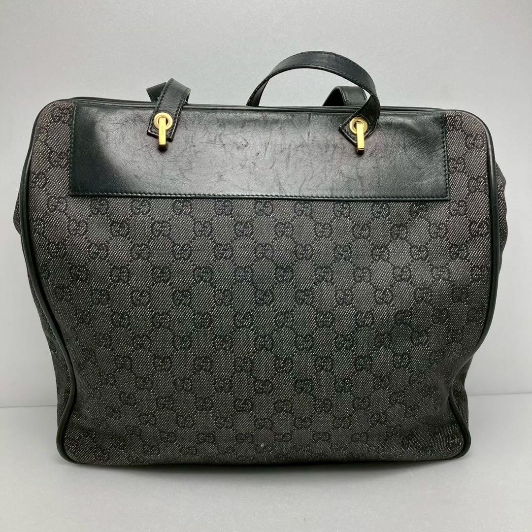 Gucci Black Tote Bag GG Canvas Leather From Japan