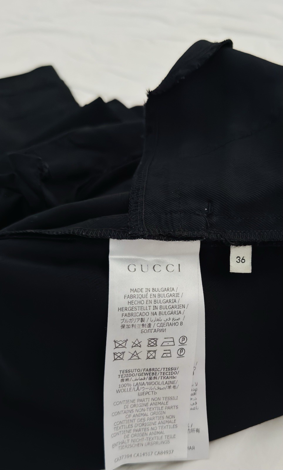 The product is a rare Gucci black uniform trousers in size IT 36 (US 0), designed for women. These pants are made of polyester and carry the distinctive Gucci brand. The uniform style adds a unique touch to the wardrobe of the fashion-forward individual. Perfect for those looking for a statement piece to add to their collection.