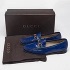 Gucci brings a refined twist to everyday footwear with these blue patent leather Horsebit loafers. Featuring the iconic bit detail and a sleek silhouette, they blend classic heritage with modern flair. Style them with tailored trousers or cropped jeans for a polished finish.Certified by The Luxury Closet - This item has gone through a detailed authentication process overseen by our experts. We offer a lifetime guarantee of authenticity on all our items. Import duties, taxes and charges are not included in the item price. These charges are the buyers responsibility. Please check with your country’s customs office to determine what these additional cost will be prior to buying. Our eBay Store About Us Contact Us Add to Favorite Sellers Gucci Blue Patent Leather 1953 Horsebit Slip On Loafers Size 37 $304.7 Gucci brings a refined twist to everyday footwear with these blue patent leather Horsebit loafers. Featuring the iconic bit detail and a sleek silhouette, they blend classic heritage with modern flair. Style them with tailored trousers or cropped jeans for a polished finish. Product Details Brand Color Blue Dimensions Material Patent Leather Size 37 Outsole Width Outsole Length Heel Height Includes Certified by The Luxury Closet This item has gone through a detailed authentication process overseen by our experts. We offer a lifetime guarantee of authenticity on all our items. How We Check The in-house team of experts at The Luxury Closet is highly trained to verify the authenticity and the condition of the luxury products. They ensure that only 100% authentic items are put on sale.The evaluation process is unique with its own mix of assessment criteria and differs according to the category. Each item is evaluated based on the following combination of hallmarks, hardware, stitching, symmetry, material, craftsmanship, stamping, codes, hologram stickers, and packaging. Our authenticators also check if the items have been modified or amended (e.g., aftermarket diamonds, replaced batteries, repaired bags, etc.) International Buyers Import duties, taxes and charges are not included in the item price. These charges are the buyers responsibility. Please check with your country’s customs office to determine what these additional cost will be prior to buying.