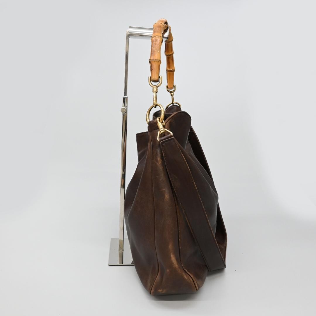 Gucci Brown Bamboo Shoulder Bag Handbag Used Key Features - Brand: Gucci - Product Type: Handbag - Model: 46179 - Color: Brown, Light Brown, Gold - Material: Leather, Bamboo - Size: Large (please refer to images for detailed measurements; convert cm to inches) - Condition: Used, with signs of wear including scratches, peeling, stains, and some interior peeling. Overall, in good condition with no major damage, suitable for long-term use. - Note: No accessories are included unless noted in the title or product description. If you have any questions, please ask before purchasing. Specifications Brand Gucci Country Japan Exterior Material Bamboo Style Handbag Exterior Color Brown Color Brown Product Description Item Title 46179 Gucci Handbag Brown Bamboo Shoulder Bag Payment Supports managed payments Please pay within 5 days after auction is finished. About Us We are located in Japan. It's our pleasure to make you happy by proposing our recommend item. If you have any questions or request about items, please feel free to ask us. International Buyers - Please Note: -Import duties, taxes, and charges are not included in the item price or shipping charges. These charges are the buyer's responsibility. -Please check with your country's customs office to determine what these additional costs will be prior to bidding/buying. -These charges are normally collected by the delivering freight (shipping) company or when you pick the item up - do not confuse them for additional shipping charges. -We do not mark merchandise values below value or mark items as - gifts - The US and International government regulations prohibit such behavior. Thank you for your understanding.