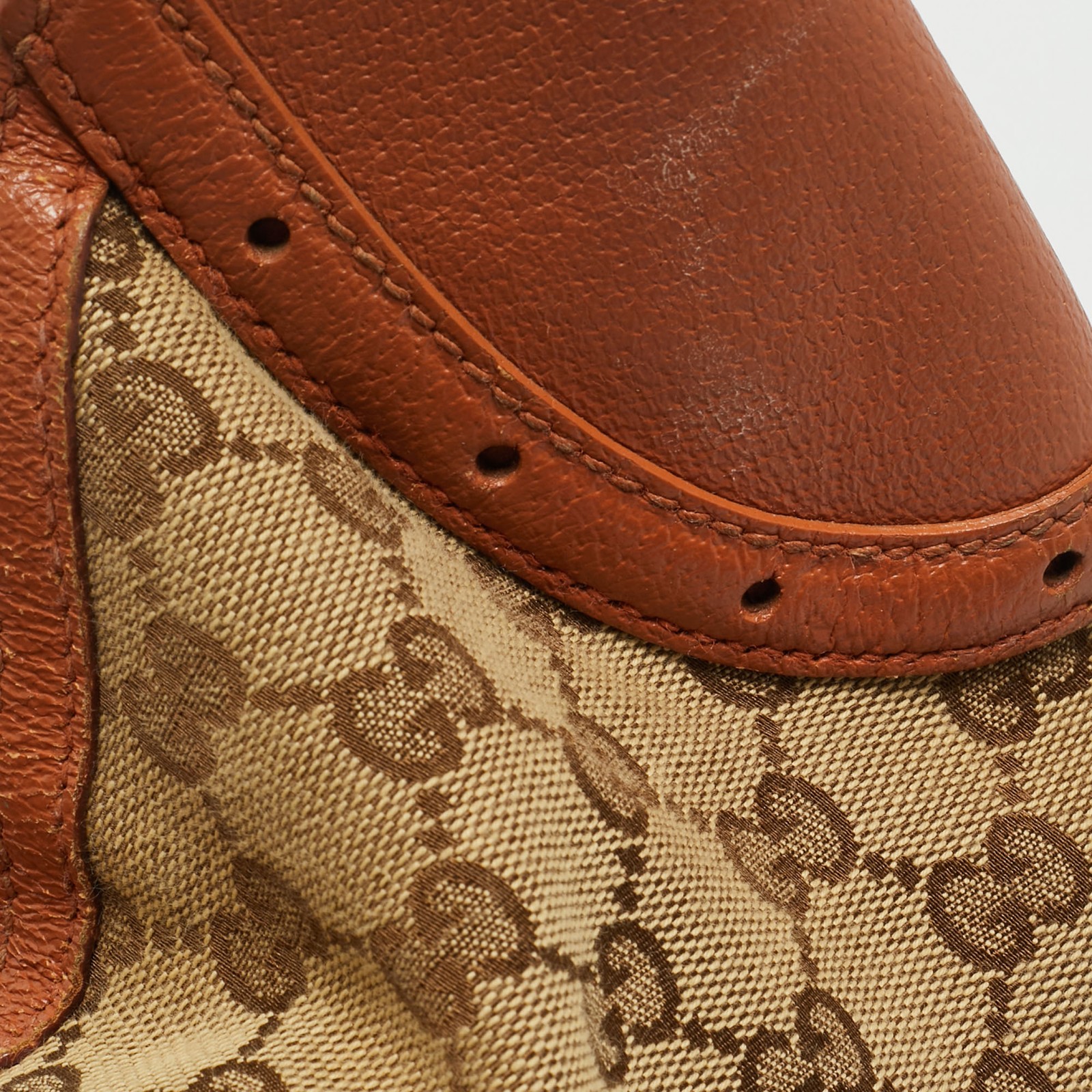 This classic hobo from Gucci pairs beige GG canvas with smooth brown leather and a structured top buckle detail. Slouchy in shape, elevated in finish — a reliable everyday carry.Certified by The Luxury Closet - This item has gone through a detailed authentication process overseen by our experts. We offer a lifetime guarantee of authenticity on all our items. Import duties, taxes and charges are not included in the item price. These charges are the buyers responsibility. Please check with your country’s customs office to determine what these additional cost will be prior to buying. Our eBay Store About Us Contact Us Add to Favorite Sellers Gucci Brown/Beige Canvas and Leather Buckle Hobo $528 This classic hobo from Gucci pairs beige GG canvas with smooth brown leather and a structured top buckle detail. Slouchy in shape, elevated in finish — a reliable everyday carry. Product Details Brand Color Brown Dimensions Material Canvas, Leather Size Outsole Width Outsole Length Heel Height Includes Certified by The Luxury Closet This item has gone through a detailed authentication process overseen by our experts. We offer a lifetime guarantee of authenticity on all our items. How We Check The in-house team of experts at The Luxury Closet is highly trained to verify the authenticity and the condition of the luxury products. They ensure that only 100% authentic items are put on sale.The evaluation process is unique with its own mix of assessment criteria and differs according to the category. Each item is evaluated based on the following combination of hallmarks, hardware, stitching, symmetry, material, craftsmanship, stamping, codes, hologram stickers, and packaging. Our authenticators also check if the items have been modified or amended (e.g., aftermarket diamonds, replaced batteries, repaired bags, etc.) International Buyers Import duties, taxes and charges are not included in the item price. These charges are the buyers responsibility. Please check with your country’s customs office to determine what these additional cost will be prior to buying.