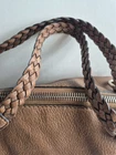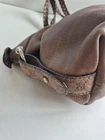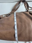 The Gucci Bag Brown Braided Leather Bamboo Bar Large Tote Satchel is a luxurious and stylish handbag perfect for travel and casual occasions. Made from high-quality leather with a distressed finish, this satchel features a unique braided pattern and silver hardware accents. The large size and double brown handles make it a versatile and chic accessory for any outfit. With its vintage appeal and designer brand, this Gucci bag combines classic and modern elements for a timeless and trendy look. In excellent pre owned condition.