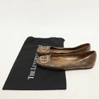 These ballet flats by Gucci are both durable and chic, crafted from crystal coated GG canvas in a versatile brown tone. Finished with a petite bow and logo charm, they’re a perfect balance of practical luxury and feminine flair.Certified by The Luxury Closet - This item has gone through a detailed authentication process overseen by our experts. We offer a lifetime guarantee of authenticity on all our items. Import duties, taxes and charges are not included in the item price. These charges are the buyers responsibility. Please check with your country’s customs office to determine what these additional cost will be prior to buying. Our eBay Store About Us Contact Us Add to Favorite Sellers Gucci Brown GG Crystal Coated Canvas Ballet Flats Size 37 $287.1 These ballet flats by Gucci are both durable and chic, crafted from crystal coated GG canvas in a versatile brown tone. Finished with a petite bow and logo charm, they’re a perfect balance of practical luxury and feminine flair. Product Details Brand Color Brown Dimensions Material Coated Canvas Size 37 Outsole Width Outsole Length Heel Height Includes Certified by The Luxury Closet This item has gone through a detailed authentication process overseen by our experts. We offer a lifetime guarantee of authenticity on all our items. How We Check The in-house team of experts at The Luxury Closet is highly trained to verify the authenticity and the condition of the luxury products. They ensure that only 100% authentic items are put on sale.The evaluation process is unique with its own mix of assessment criteria and differs according to the category. Each item is evaluated based on the following combination of hallmarks, hardware, stitching, symmetry, material, craftsmanship, stamping, codes, hologram stickers, and packaging. Our authenticators also check if the items have been modified or amended (e.g., aftermarket diamonds, replaced batteries, repaired bags, etc.) International Buyers Import duties, taxes and charges are not included in the item price. These charges are the buyers responsibility. Please check with your country’s customs office to determine what these additional cost will be prior to buying.