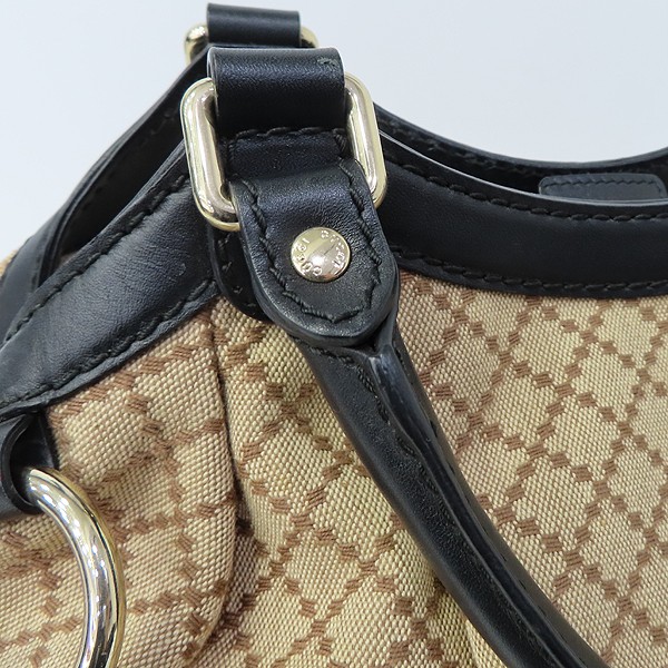 Size: 34 cm width/ 26 cm/ width 12 cm/ handle height 16 cm; color: brown/black accessories: Gucci (Gucci) 211944 brown jacquard black leather-trimmed suki tote bag [Daegu Dongseong-ro store]. The material is jacquard/leather. There is a zipper pocket on the inside. [Note when purchasing] There is dirt on the inside. **Due to the nature of second-hand luxury goods, there may be stains not visible in the image. **