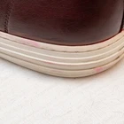 1100$MRP Gucci Burgundy Leather Miro Soft Low Top Sneakers Size: UK 10 / US 11 / EU 44.5 Gucci low-top sneakers , crafted in Italy from premium burgundy leather. This sleek and minimalist design features tonal stitching, black laces, and iconic Gucci branding embossed on the tongue and sole. Model : 423301 Size : UK 10 / US 11 / EU 44.5 Color : Burgundy Material : Leather upper and lining, rubber sole Made in : Italy ⸻ Condition Report This pre-owned pair is in used condition with visible signs of cosmetic restoration : • Exterior : The leather uppers have been repainted , and paint marks are visible around the midsole edges and heel areas (see close-up photos). Light scuffing present at the toe box and sides. • Soles : The outsoles show moderate wear but remain structurally sound, with Gucci logo treads still visible. • Interior : The insoles show normal use; “Gucci made in Italy” stamp remains intact. • Other details : Minor pink and black paint transfer noted around the midsole. All condition details are clearly shown in the listing photos – please review them carefully before purchase. ⸻ Additional Details • Style Code : 423301 • Includes : Shoes only (no box or dust bag) ⸻ Shipping & Handling • Shipping : USPS Priority Mail (2–4 business days) • Handling time : 1 business day • Packaging : Shipped securely in a non-branded box with protective wrap ⸻ Please feel free to reach out with any questions prior to purchase. All sales are final. Thank you for viewing!