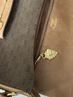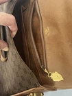The Gucci Shoulder Bag Classic Made In Italy. medium-sized designer handbag with a timeless Gucci GG pattern in brown canvas and leather. Featuring a zip and buckle closure, brown leather handle/strap color, gold hardware accents, and inner pockets, this stylish shoulder bag is perfect for unisex adults looking for a luxurious and versatile accessory. Made in Italy, this bag exudes quality craftsmanship and sophistication, making it a must-have for any fashion-forward individual. Very good condition. Pictures tells the rest.