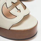 Channel vintage glamour with these Gucci sandals, crafted from cream leather and finished with the iconic GG detail atop a sturdy block heel.Certified by The Luxury Closet - This item has gone through a detailed authentication process overseen by our experts. We offer a lifetime guarantee of authenticity on all our items. Import duties, taxes and charges are not included in the item price. These charges are the buyers responsibility. Please check with your country’s customs office to determine what these additional cost will be prior to buying. Our eBay Store About Us Contact Us Add to Favorite Sellers Gucci Cream Leather Horsebit Platform Block Heel Ankle Strap Sandals Size 36 $599.5 Channel vintage glamour with these Gucci sandals, crafted from cream leather and finished with the iconic GG detail atop a sturdy block heel. Product Details Brand Color Cream Dimensions Material Leather Size 36 Outsole Width 8 cm Outsole Length 24 cm Heel Height 12.5 cm Includes Original Dustbag Certified by The Luxury Closet This item has gone through a detailed authentication process overseen by our experts. We offer a lifetime guarantee of authenticity on all our items. How We Check The in-house team of experts at The Luxury Closet is highly trained to verify the authenticity and the condition of the luxury products. They ensure that only 100% authentic items are put on sale.The evaluation process is unique with its own mix of assessment criteria and differs according to the category. Each item is evaluated based on the following combination of hallmarks, hardware, stitching, symmetry, material, craftsmanship, stamping, codes, hologram stickers, and packaging. Our authenticators also check if the items have been modified or amended (e.g., aftermarket diamonds, replaced batteries, repaired bags, etc.) International Buyers Import duties, taxes and charges are not included in the item price. These charges are the buyers responsibility. Please check with your country’s customs office to determine what these additional cost will be prior to buying.
