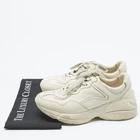 Chunky yet refined, these Gucci Rhyton sneakers are crafted in supple cream leather and flaunts ;ace up closure. With their sculptural sole and retro inspired silhouette, they offer both statement appeal and all day comfort.Certified by The Luxury Closet - This item has gone through a detailed authentication process overseen by our experts. We offer a lifetime guarantee of authenticity on all our items. Import duties, taxes and charges are not included in the item price. These charges are the buyers responsibility. Please check with your country’s customs office to determine what these additional cost will be prior to buying. Our eBay Store About Us Contact Us Add to Favorite Sellers Gucci Cream Leather Rhyton Sneakers Size 39 $171.6 Chunky yet refined, these Gucci Rhyton sneakers are crafted in supple cream leather and flaunts ;ace up closure. With their sculptural sole and retro inspired silhouette, they offer both statement appeal and all day comfort. Product Details Brand Color Cream Dimensions Material Leather Size 39 Outsole Width Outsole Length Heel Height Includes Certified by The Luxury Closet This item has gone through a detailed authentication process overseen by our experts. We offer a lifetime guarantee of authenticity on all our items. How We Check The in-house team of experts at The Luxury Closet is highly trained to verify the authenticity and the condition of the luxury products. They ensure that only 100% authentic items are put on sale.The evaluation process is unique with its own mix of assessment criteria and differs according to the category. Each item is evaluated based on the following combination of hallmarks, hardware, stitching, symmetry, material, craftsmanship, stamping, codes, hologram stickers, and packaging. Our authenticators also check if the items have been modified or amended (e.g., aftermarket diamonds, replaced batteries, repaired bags, etc.) International Buyers Import duties, taxes and charges are not included in the item price. These charges are the buyers responsibility. Please check with your country’s customs office to determine what these additional cost will be prior to buying.