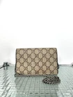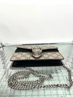 An iconic Gucci classic, the Dionysus Mini Chain Bag embodies elegance and mythological inspiration. Crafted in GG Supreme canvas with black suede accents, it features the signature tiger head closure, symbol of the god Dionysus. The aged silver-tone chain allows shoulder or crossbody wear. Details: Brand: Gucci Model: Dionysus Mini Chain Bag Size: 16 × 11 × 4 cm Material: GG Supreme canvas & black suede Color: Beige/brown with black details Hardware: Aged silver-tone Strap: Chain for shoulder or crossbody wear Closure: Flap with magnetic tiger head buckle Interior: Suede lining with card slots Made in: Italy Condition: Very good overall, with light marks on the back exterior (barely visible, shown in photos). Why you’ll love it: A chic yet bold bag, perfect from day to night. This timeless piece adds character to any outfit and remains a true Gucci essential. ✨ Discover more rare and authentic luxury treasures in my boutique! ✨ #Gucci #Dionysus #GucciDionysus #LuxuryBag #ItBag #LuxuryFashion #DesignerBag #VintageChic #GucciLover #PrelovedLuxury #TimelessStyle