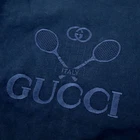 Absolutely love this Gucci tee! The embroidered tennis racket detail gives it such a unique, vintage vibe, and the navy color is so versatile. The 100% cotton fabric feels soft and comfortable, while the Italian craftsmanship ensures great quality. The size S fits perfectly—just the right relaxed fit without being too oversized. A stylish yet understated piece that elevates any casual outfit. Would definitely recommend!