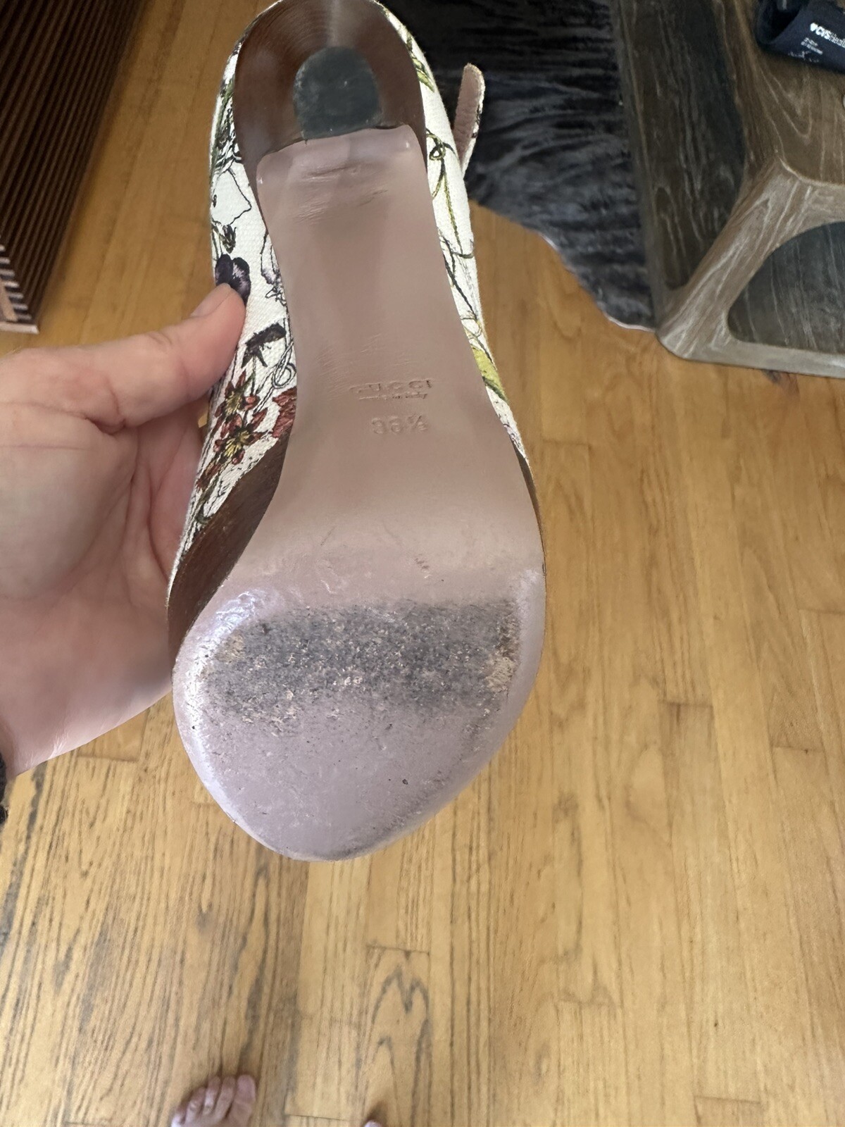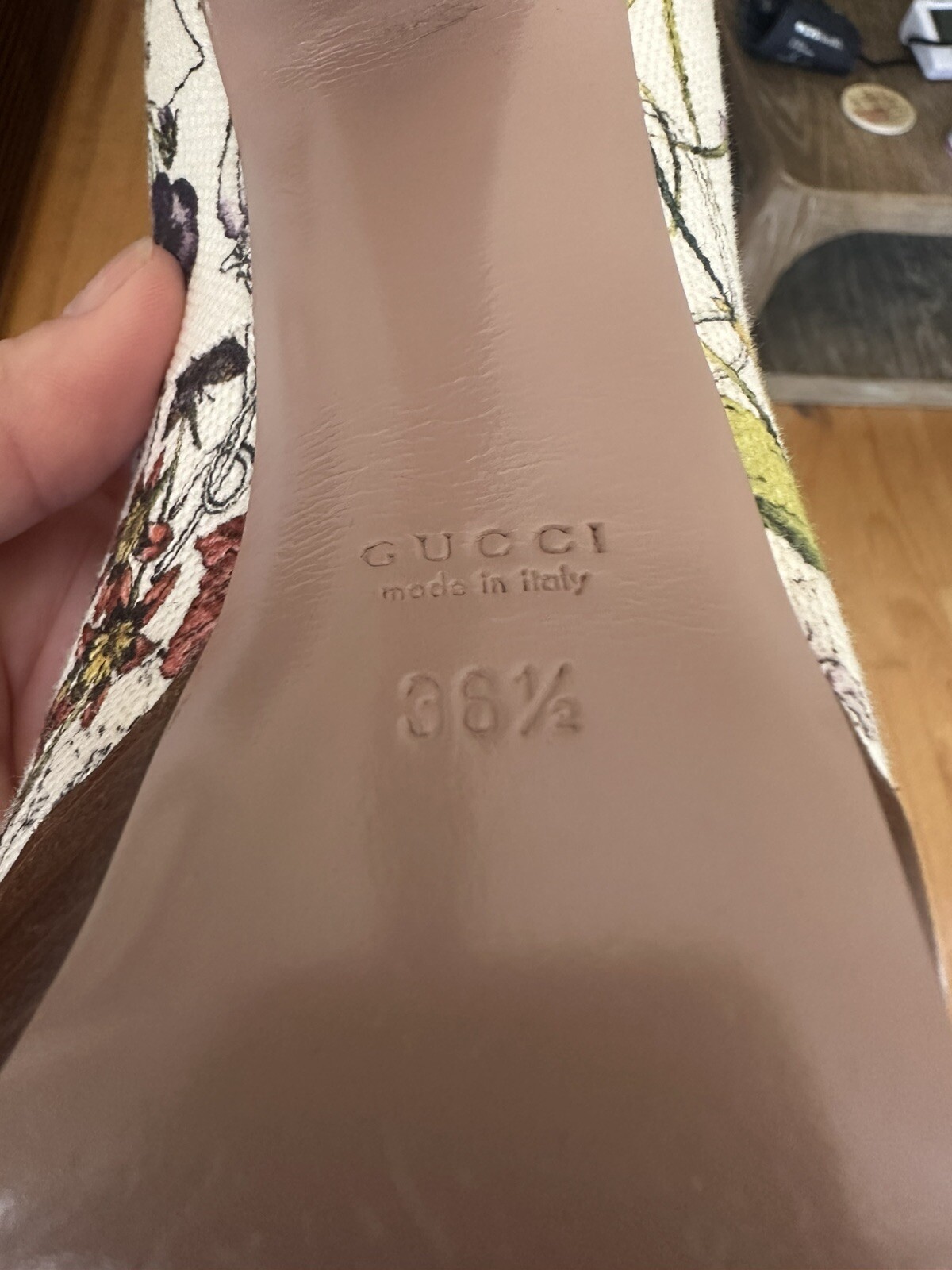Seller Notes:“Worn once and well taken care of.”Type:HeelBrand:GucciColor:MulticolorClosure:BuckleDepartment:WomenUS Shoe Size:6.5Heel Style:StilettoPattern:FloralTheme:FlowerEU Shoe Size:36.5Upper Material:Cotton BlendStyle:PumpModel:FlowersHeel Height:Ultra High (4 in & Higher)Toe Shape:Peep Toe